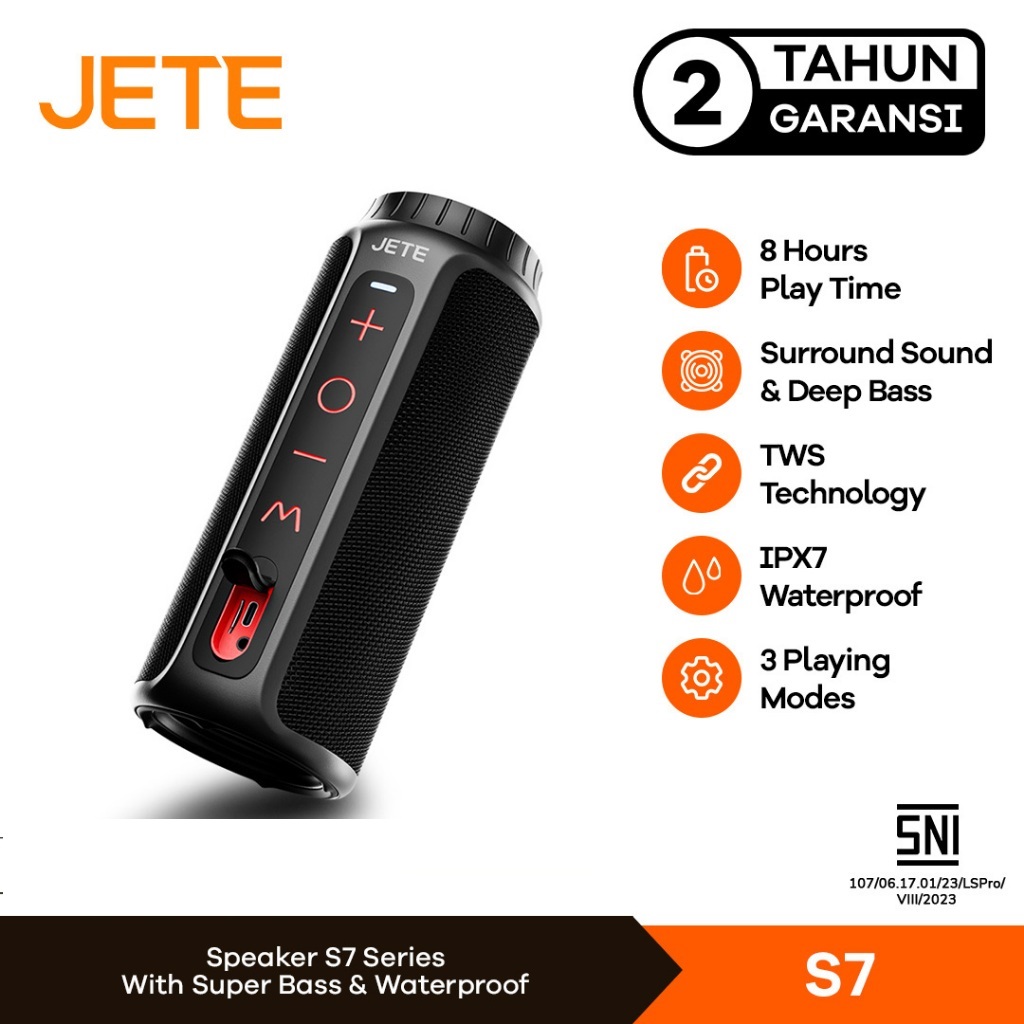 JETE Speaker Bluetooth S7 Audio Super Bass IPX7 Speaker Portable - Garansi 2 Tahun Original Official Store