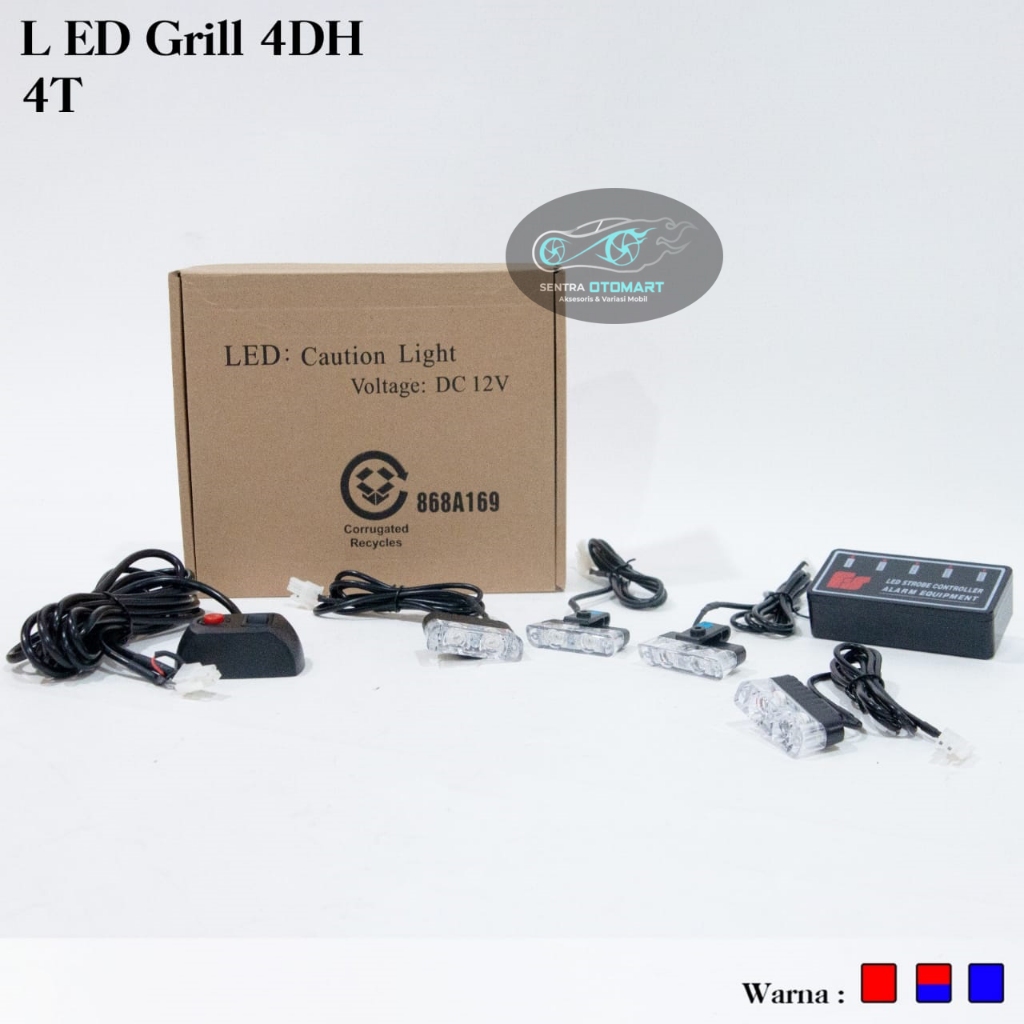 Lampu Led Strobo Gril Grill Jepit Tipis 4DH 4 pcs 2 Mata Led Biru
