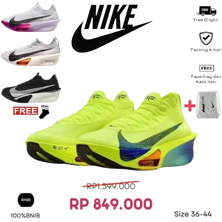 Sepatu lari maraton pria dan wanita Alphafly 3Proto, generasi ketiga Alpha, dengan plat karbon penuh yang dapat membantu mencapai waktu kurang dari 2 jam dalam maraton