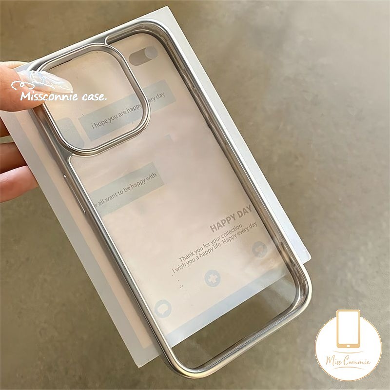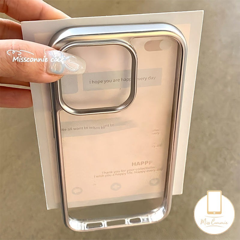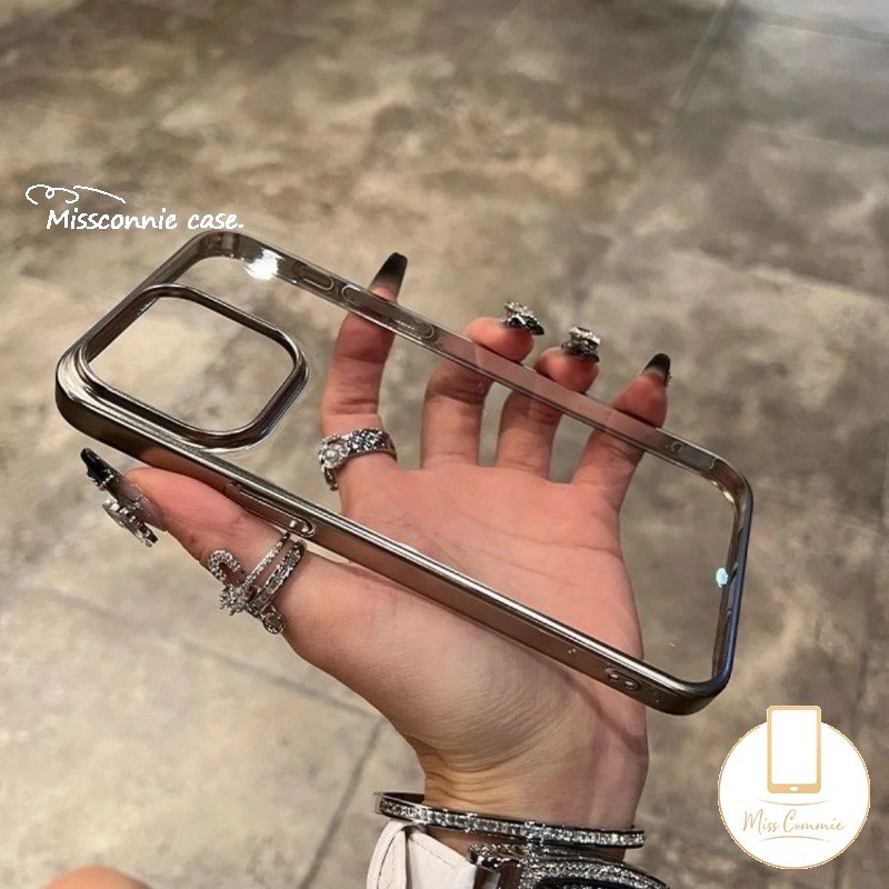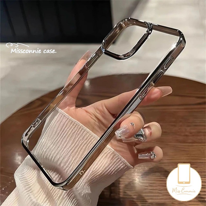 Missconnie Casing Ponsel Bening Bingkai Warna Solid Pelapisan Mewah Kompatibel Untuk IPhone 15 11 13 14 12 Pro Max XR 7P