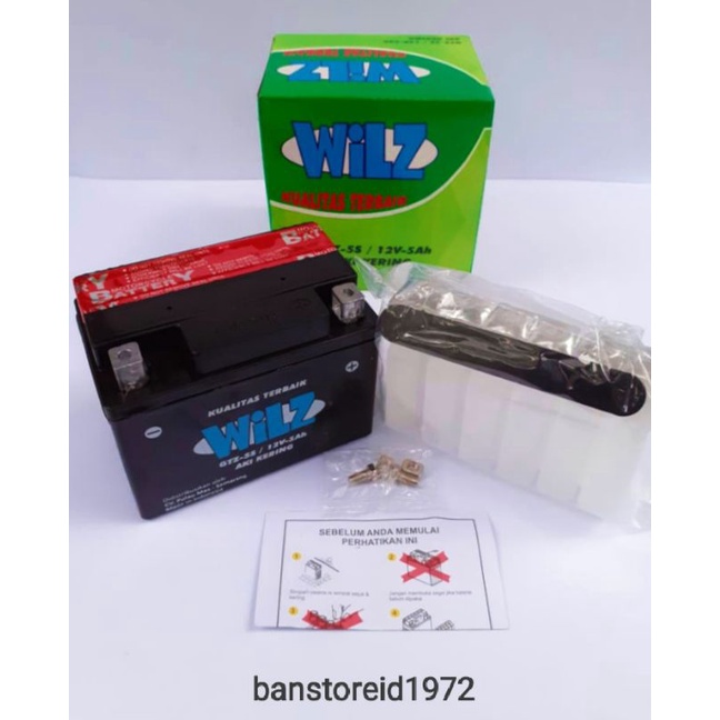 Aki Accu Kering Motor WILZ GTZ5S - 12V - Beat , Vario Karbu , Supra X 125 , Mio J , Soul GT , Vixion , Revo , Blade