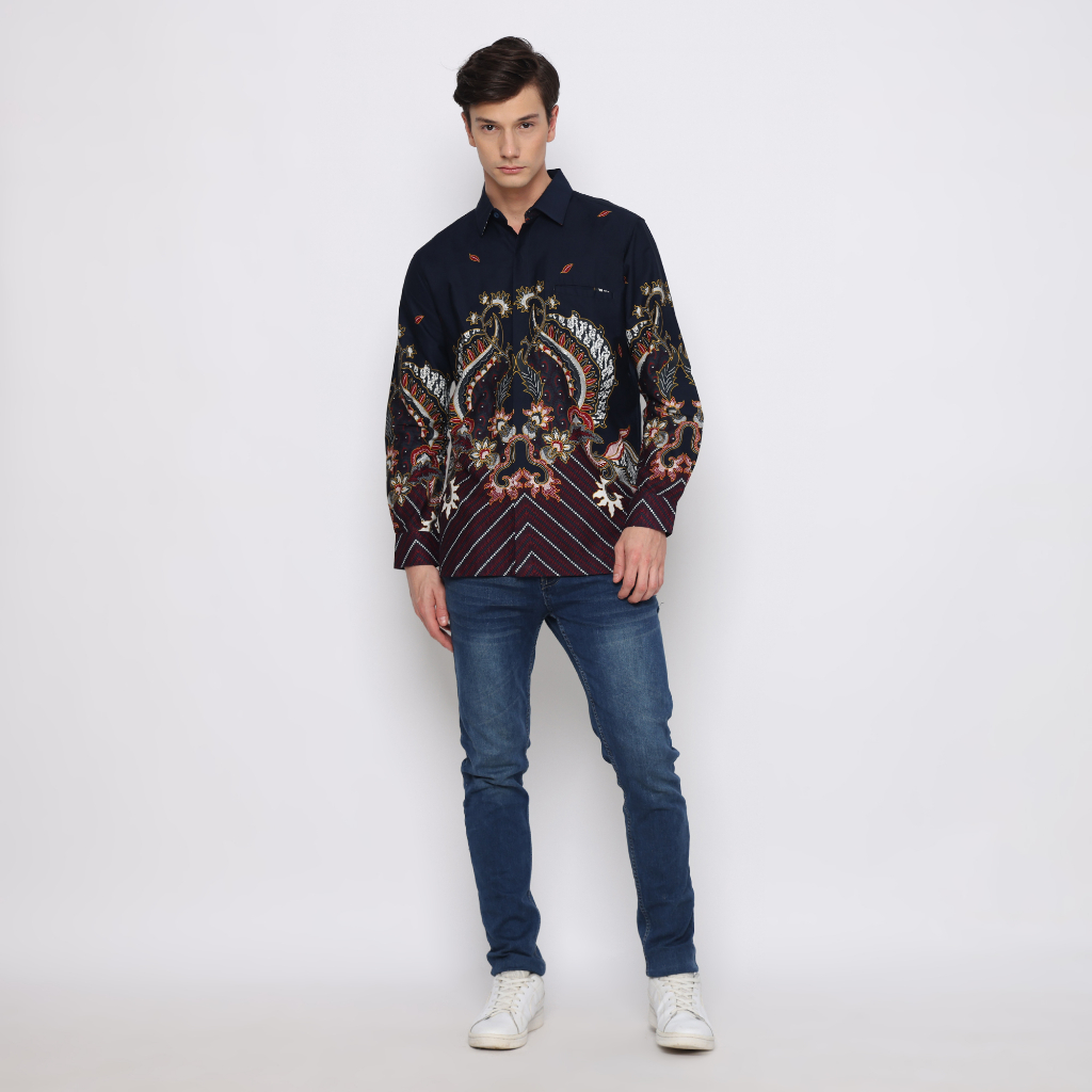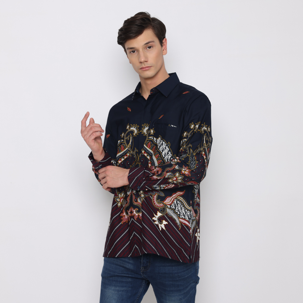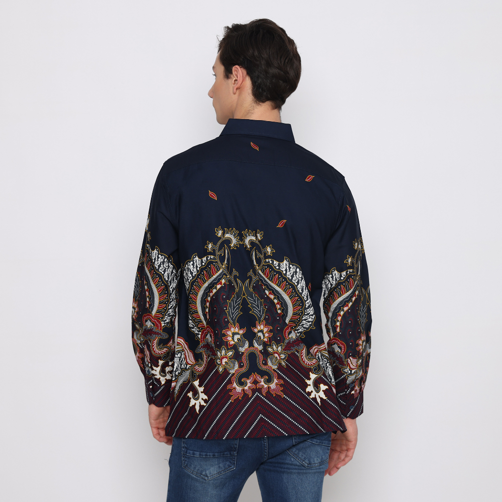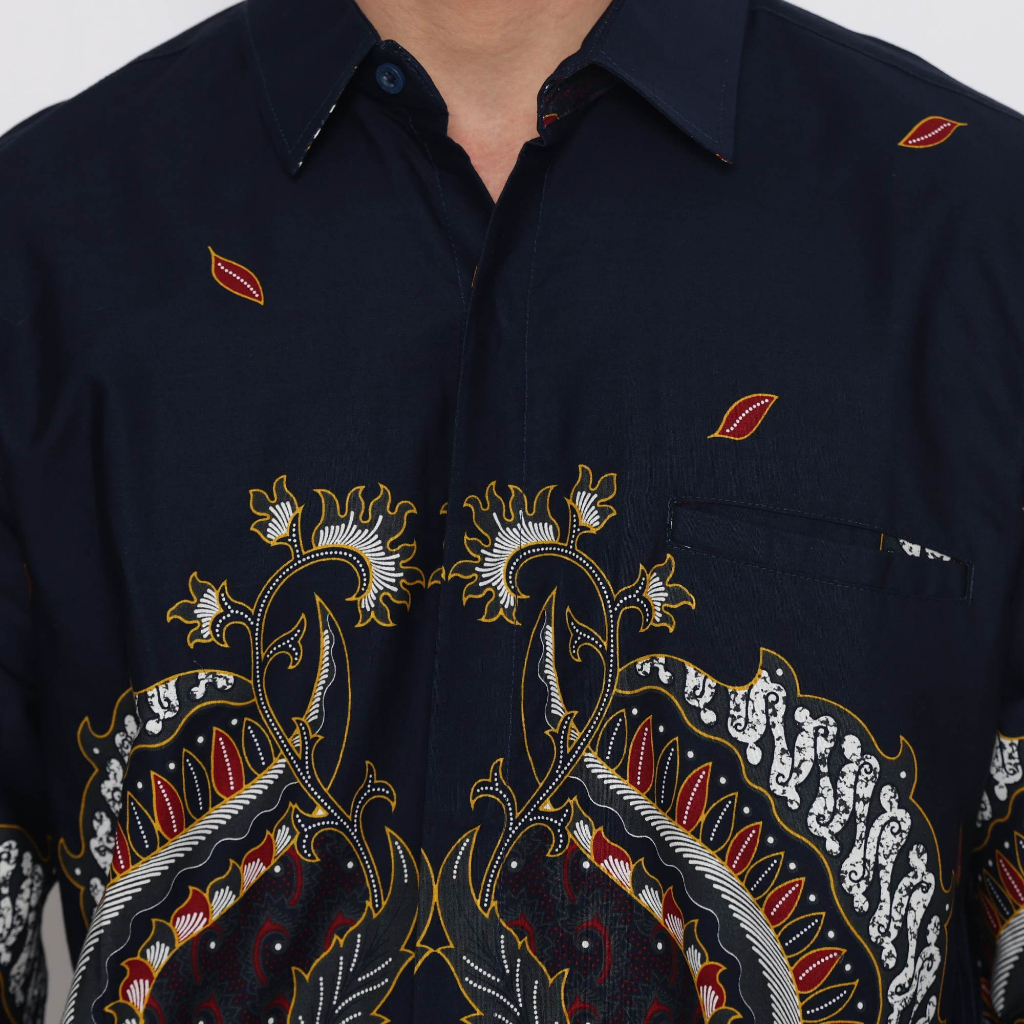 Kemeja Batik Pria Lengan Panjang Katun Navy 36036