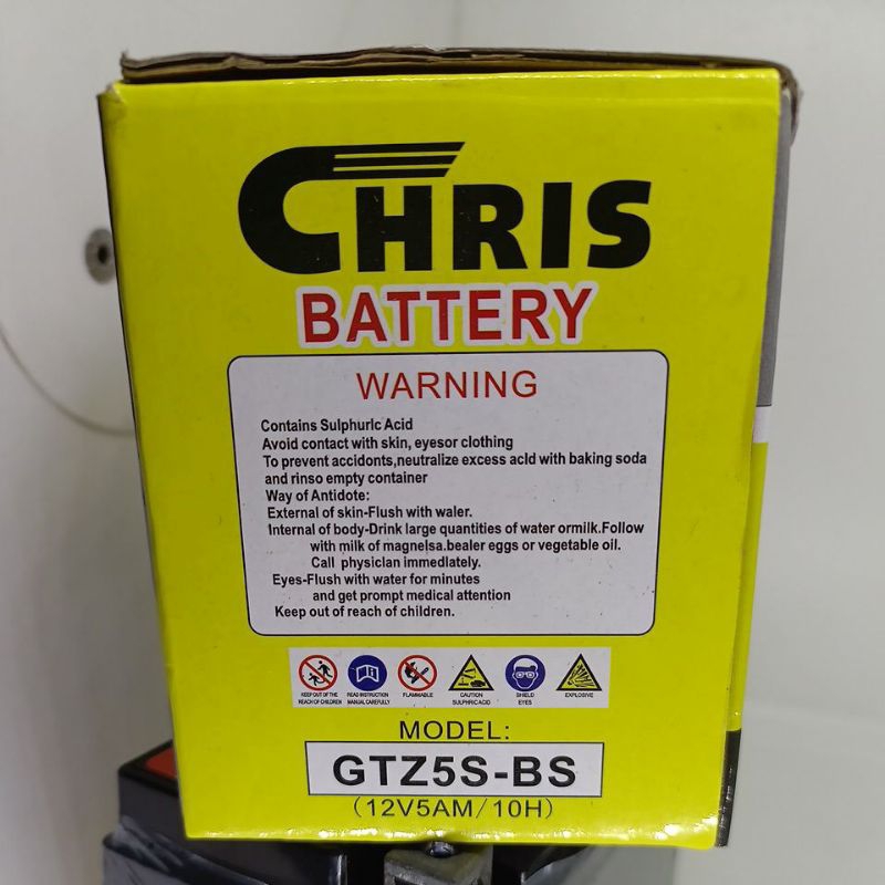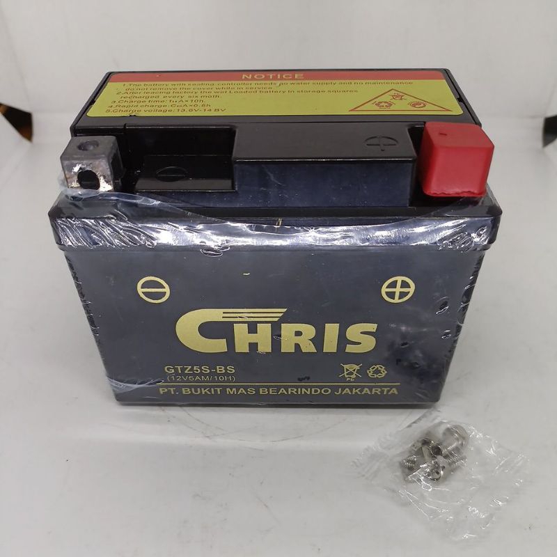 Aki Motor (CHS) GTZ5S - BS 12VOLT 5AM / 10H aki kering CHRIS