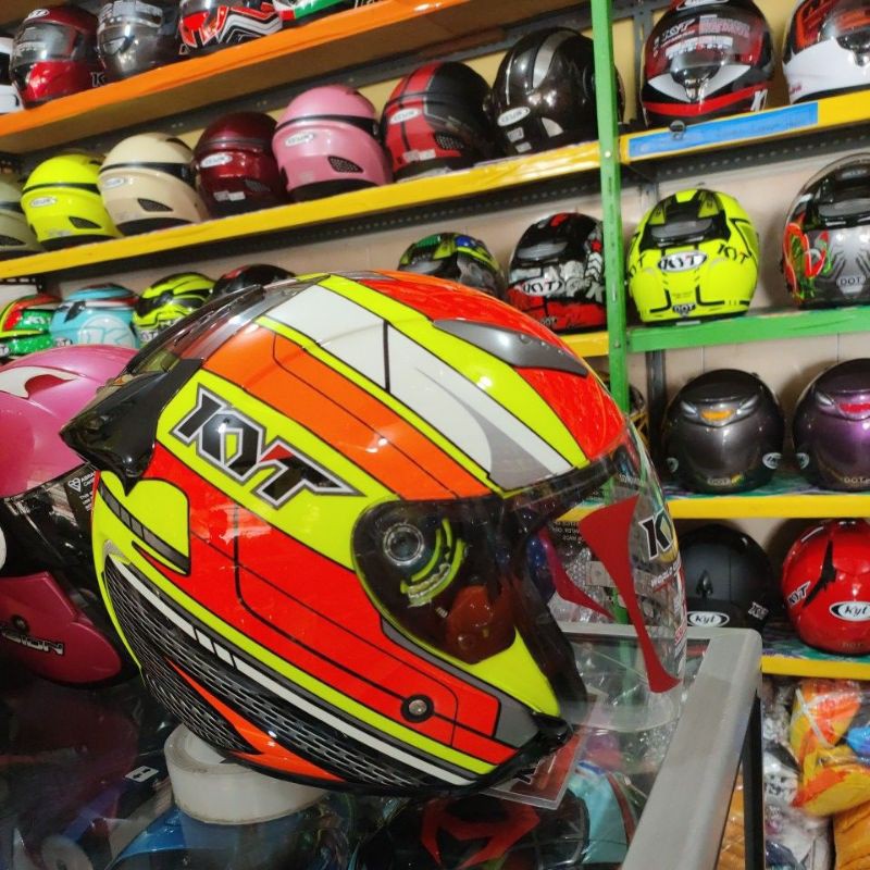 HELM KYT GALAXY SLIDE SERI#2 SUPER FLUO YELOW /RED FLUO DOBEL VISOR