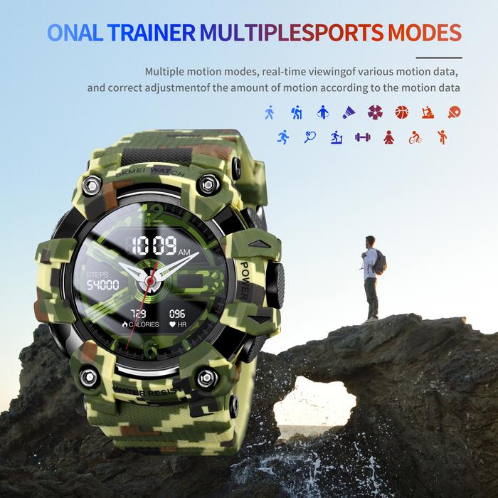 Jam Tangan Pria Smartwatch SKMEI S231 Army Green Camo Water Resistant Smart