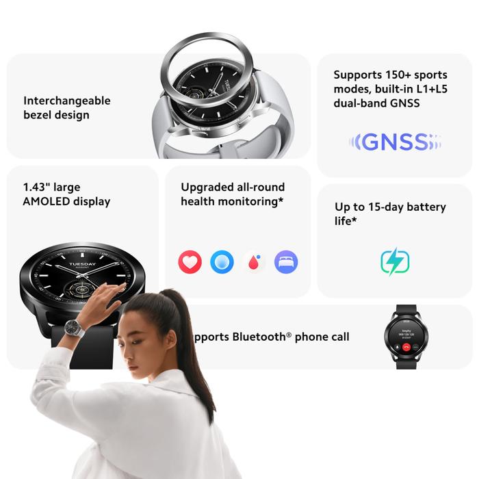 Xiaomi Watch S3 1.43 Inch Amoled 150+ Mode Olahraga Tahan Air 5ATM Baterai Tahan 15 Hari