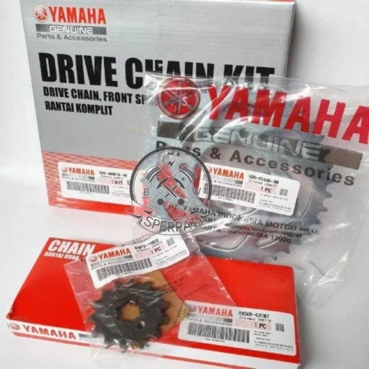 Gear Set Gear Set YAMAHA + Rantai 5D9 untuk Motor VEGA ZR, VEGA RR, JUPITER Z1, JUPITER Z New, JUPITER Robot Force Terb