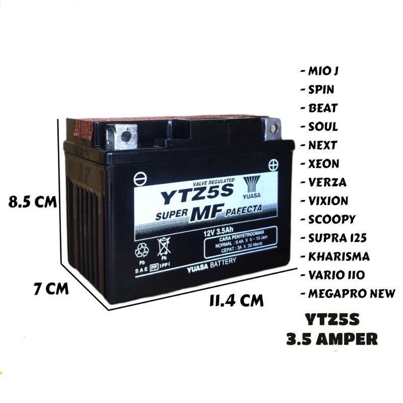 AKI MOTOR YUASA YTZ5S 12V 3,5AH BEAT KARBU/FI, MIO J, XEON