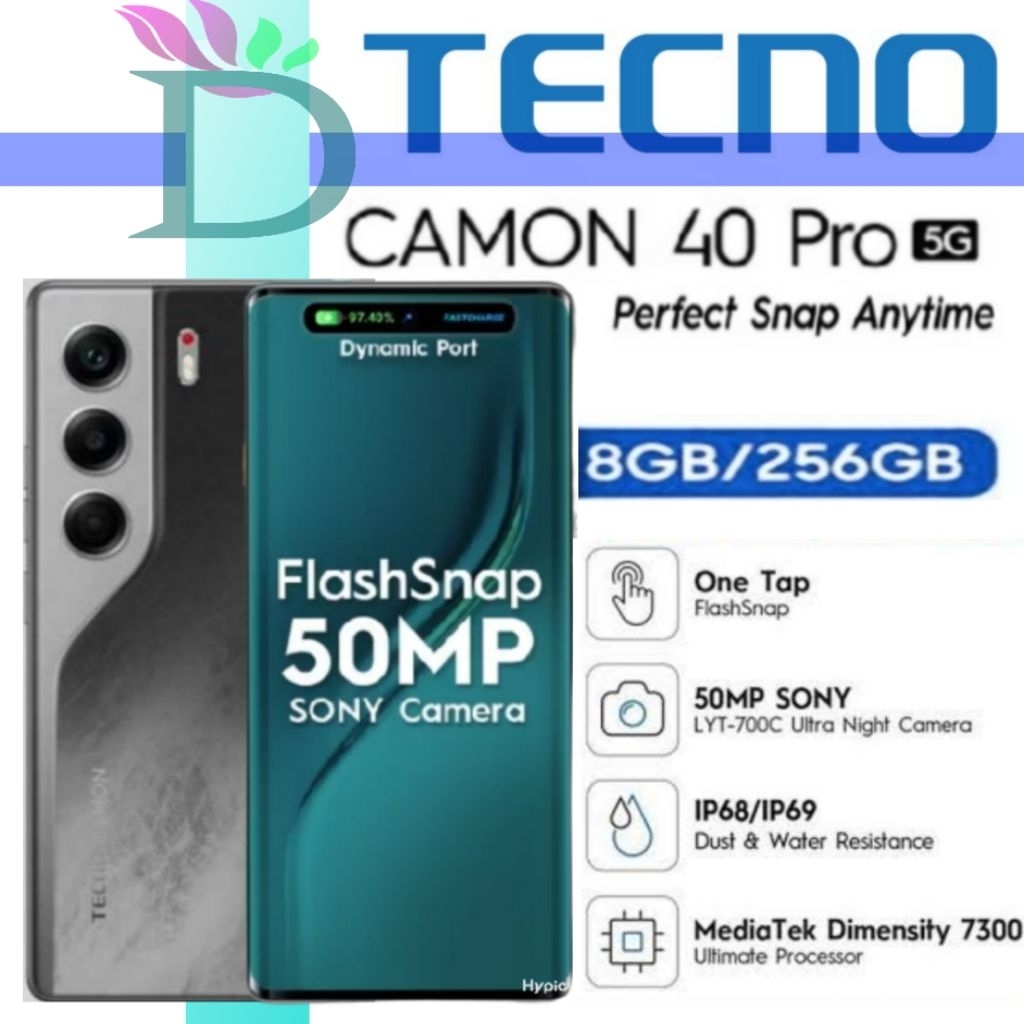 TECNO CAMON 40 8/256GB | IP 68 | Dimensity 7300 | Dolby Atmos | 6.78 Amoled 120 Hz | 5200 mAh | Bergaransi Resmi Tecno I