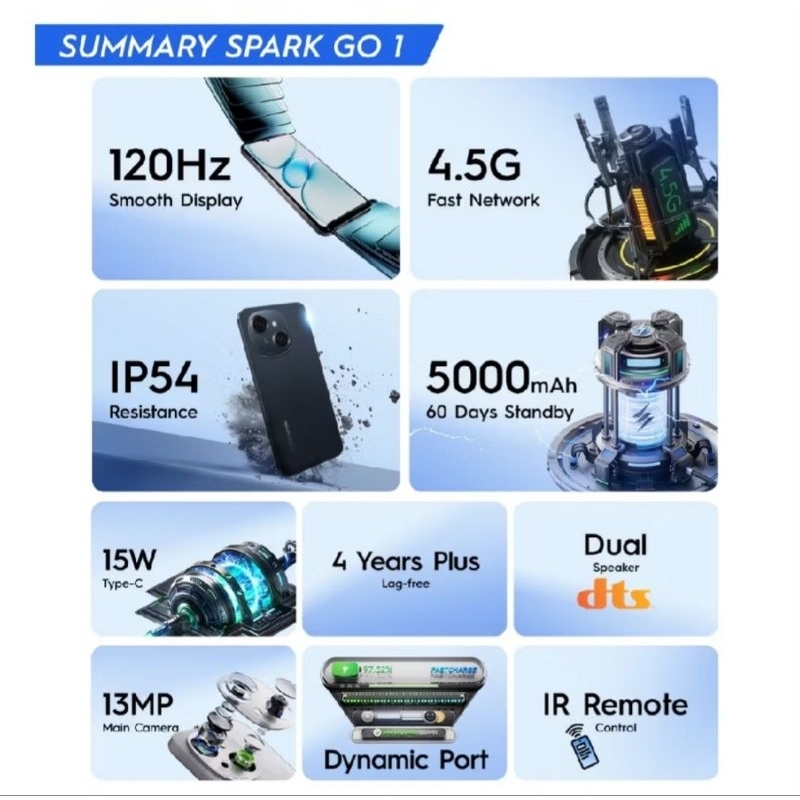 Tecno Spark Go 1 4/64GB | Spark Go1 4/128GB | go1 3/64GB Garansi Resmi