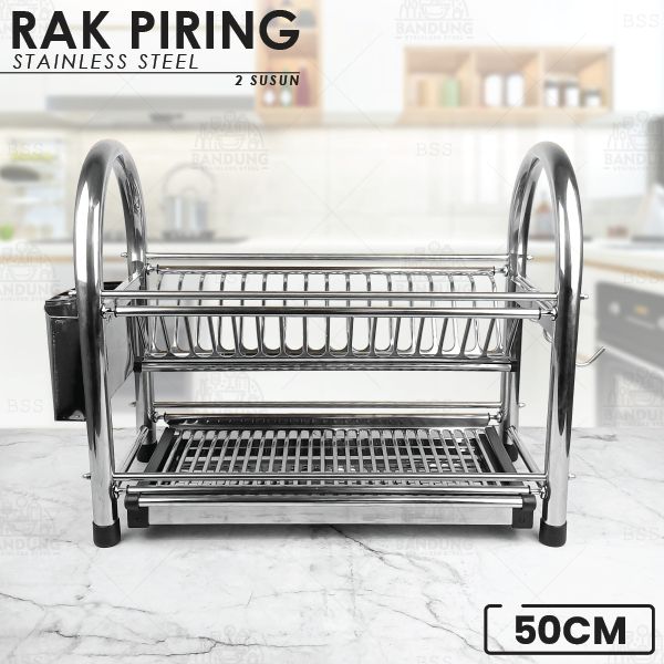 Rak piring 50cm / 60cm stainless steel tebal tempat sendok pisau 2 susun