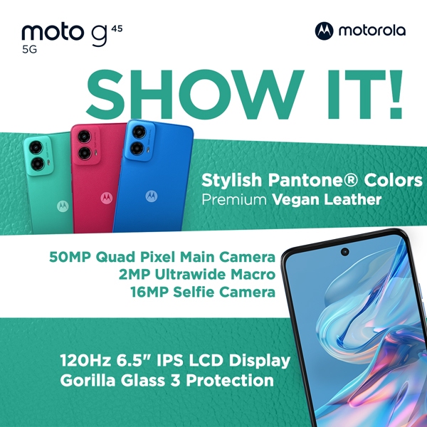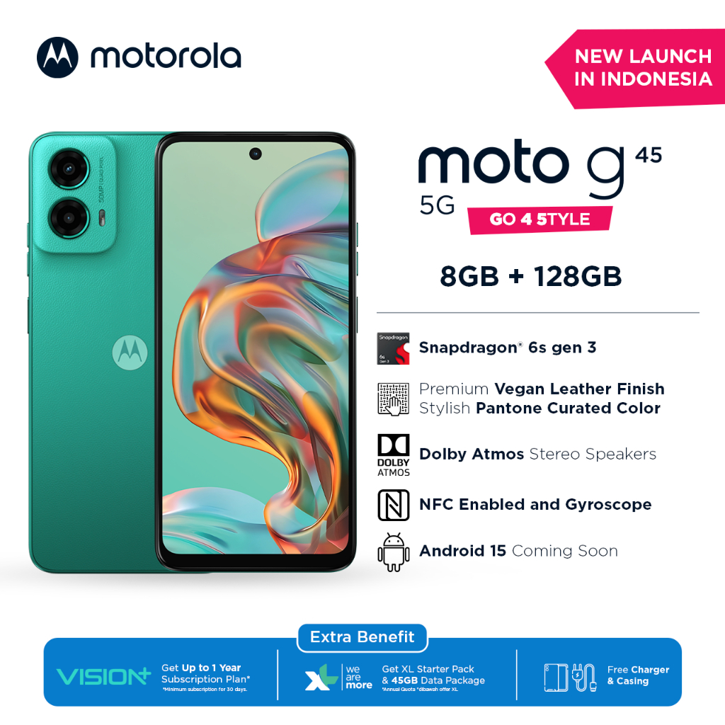 Motorola G45 5G 8/128GB - Up to 16GB Extended RAM - Snapdragon 6s Gen 3 - 6.5 inch Screen Size - Gorilla Glass 3 - 120Hz