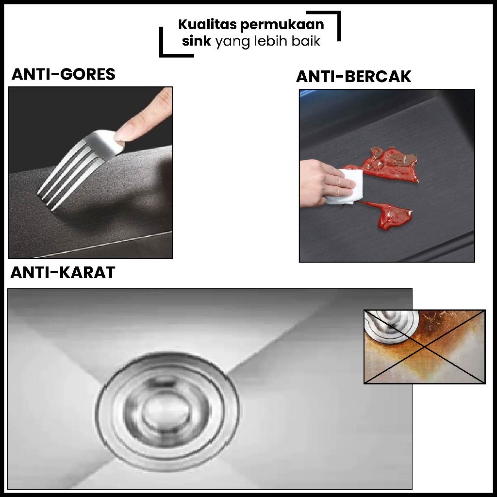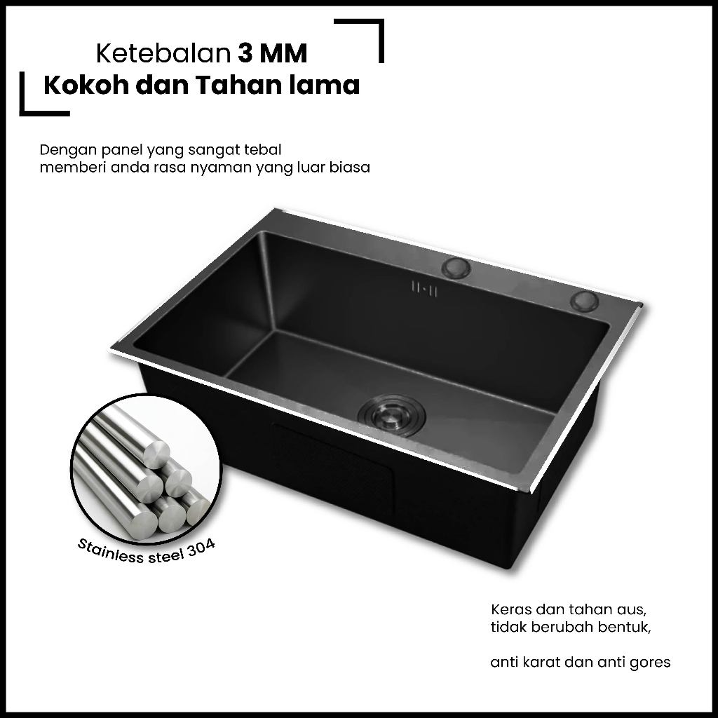 Stainless Steel wastafel cuci piring Modern kitchen sink bak cuci piring stainless sink cuci piring Hitam/Perak 1 lubang