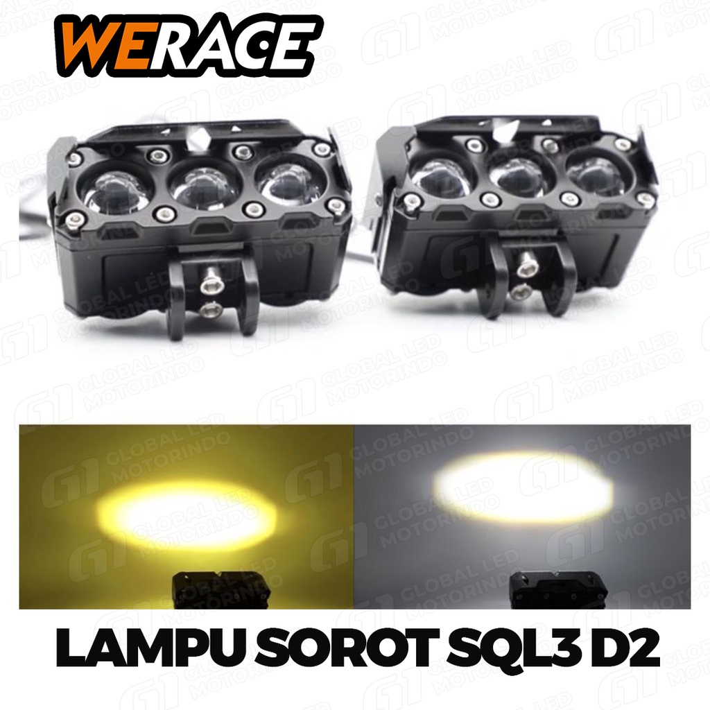 WERACE Sepasang Lampu Tembak LED Foglamp + Fan SQL 3 Mata 60Watt High Low Laser Gun Putih Kuning