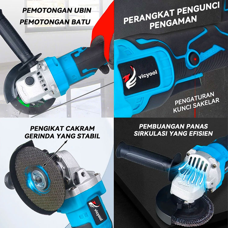 Gerinda Listrik Brushless Mesin Gerinda Baterai 1200w Mesin Gerinda Tangan Cordless Angle Grinder Alat Gerinda Potong