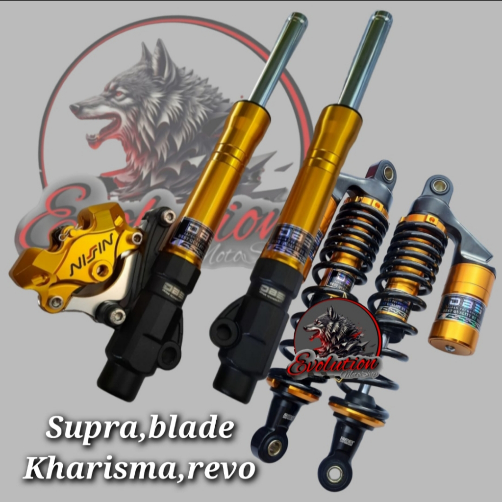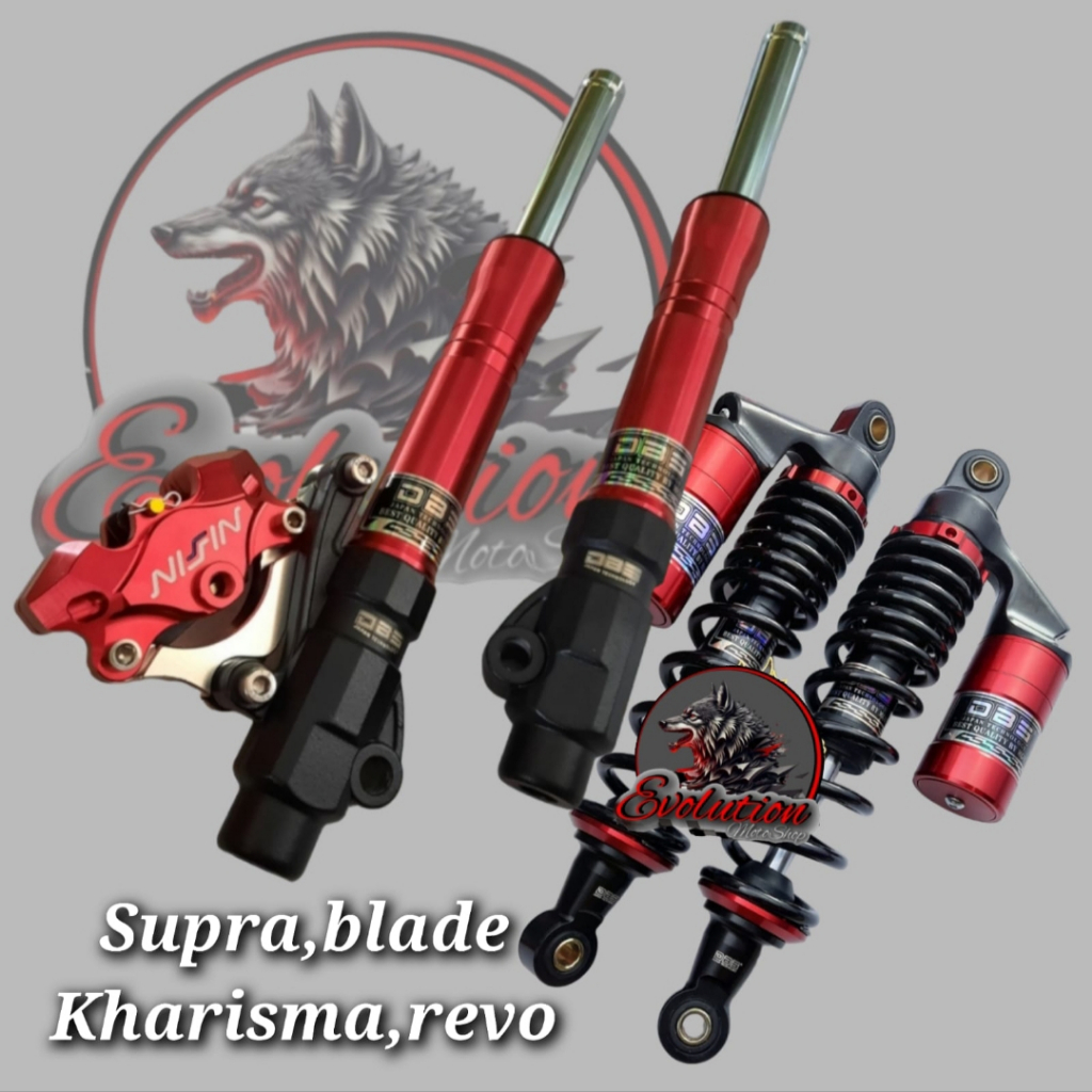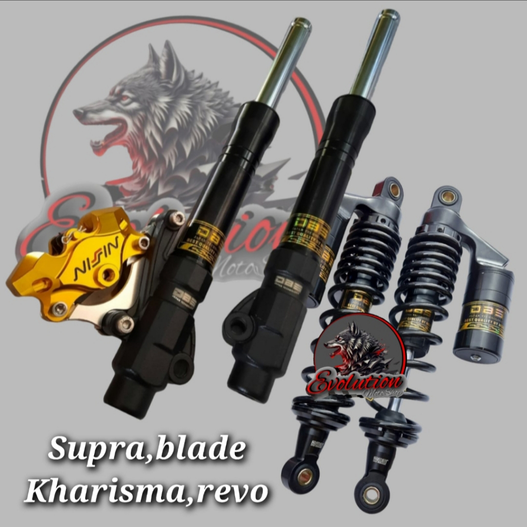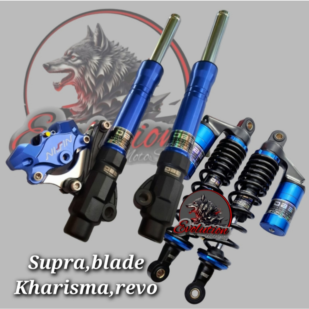 Shock depan SUPRA paket kaliper plus shock belakang tabung shockbreaker REVO - BLADE - KHARISMA paket komplit