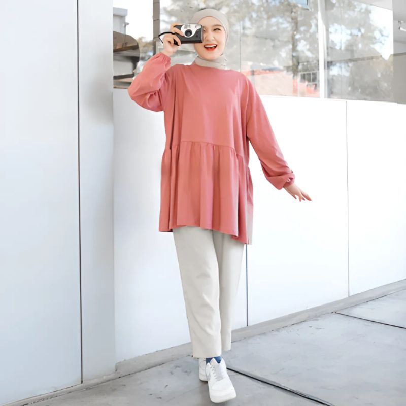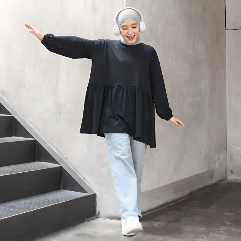 Baju Busui Ruffle Top Oversized Kaos Busui Bukaan Samping Kanan Kiri Kekinian
