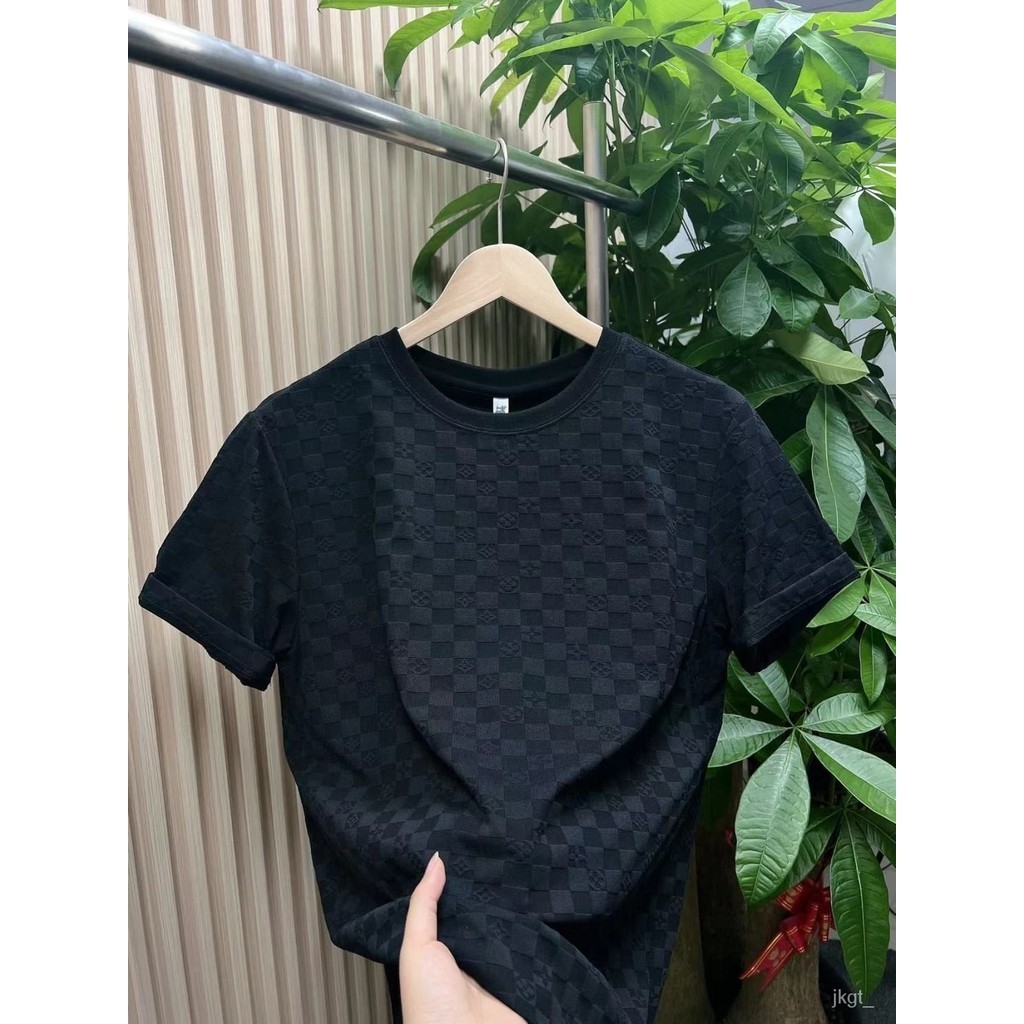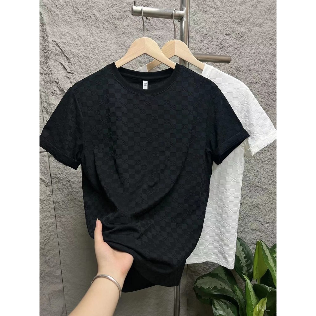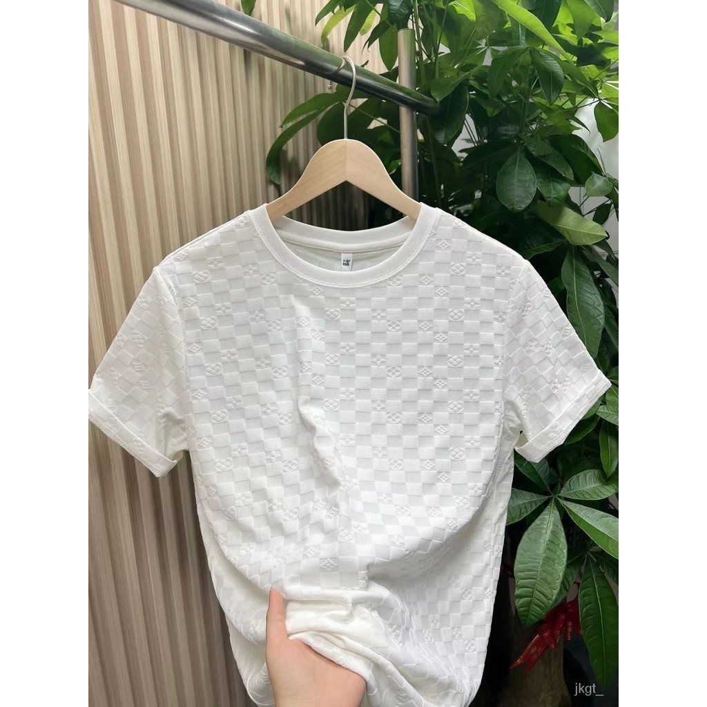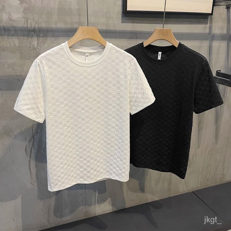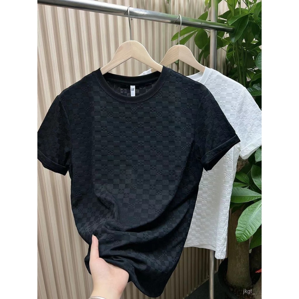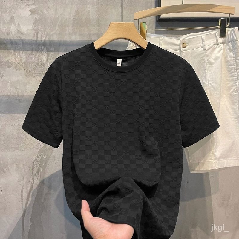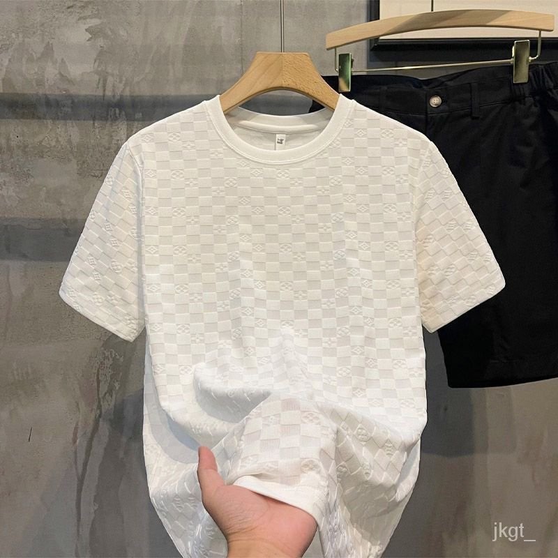 Ice Silk Fashion Light Luxury Plaid Short Sleeved T-shirt/Kaos Lengan Pendek Kotak-kotak Pria
