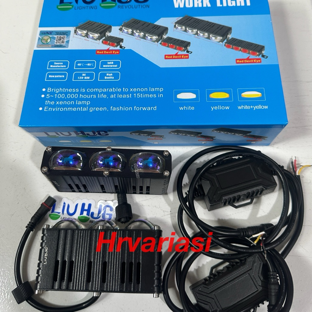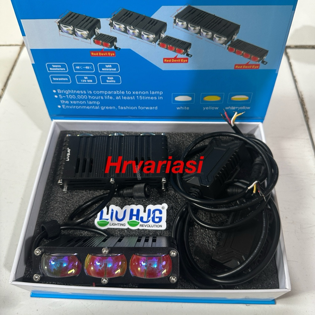 Lampu Tembak Mobil Slim Tipis Mini Projie Biled 80W Grill Devil Merah Merk Liu HJG