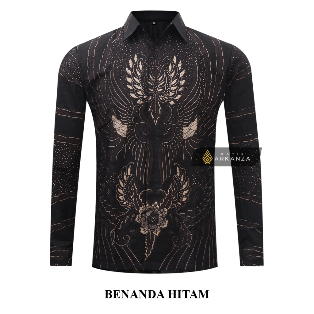 BATIK ARKANZA Kemeja Batik Pria Warna Hitam Elegan Lengan Panjang Slimfit DESC