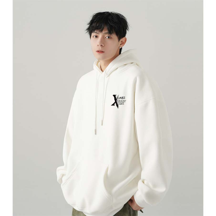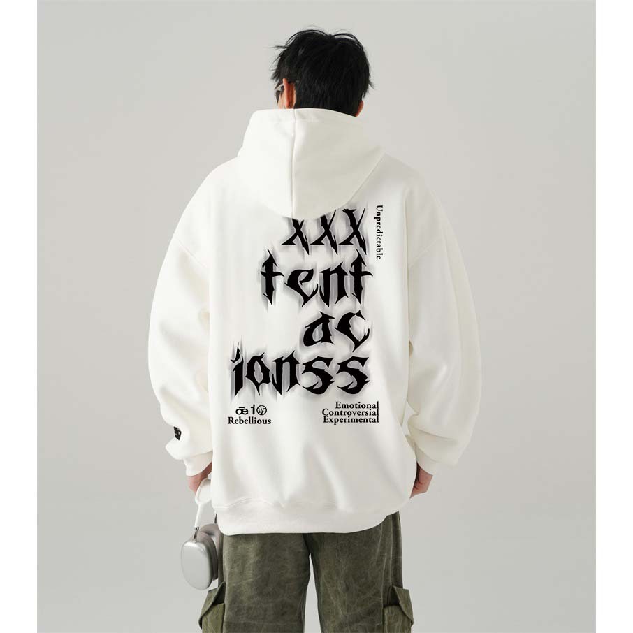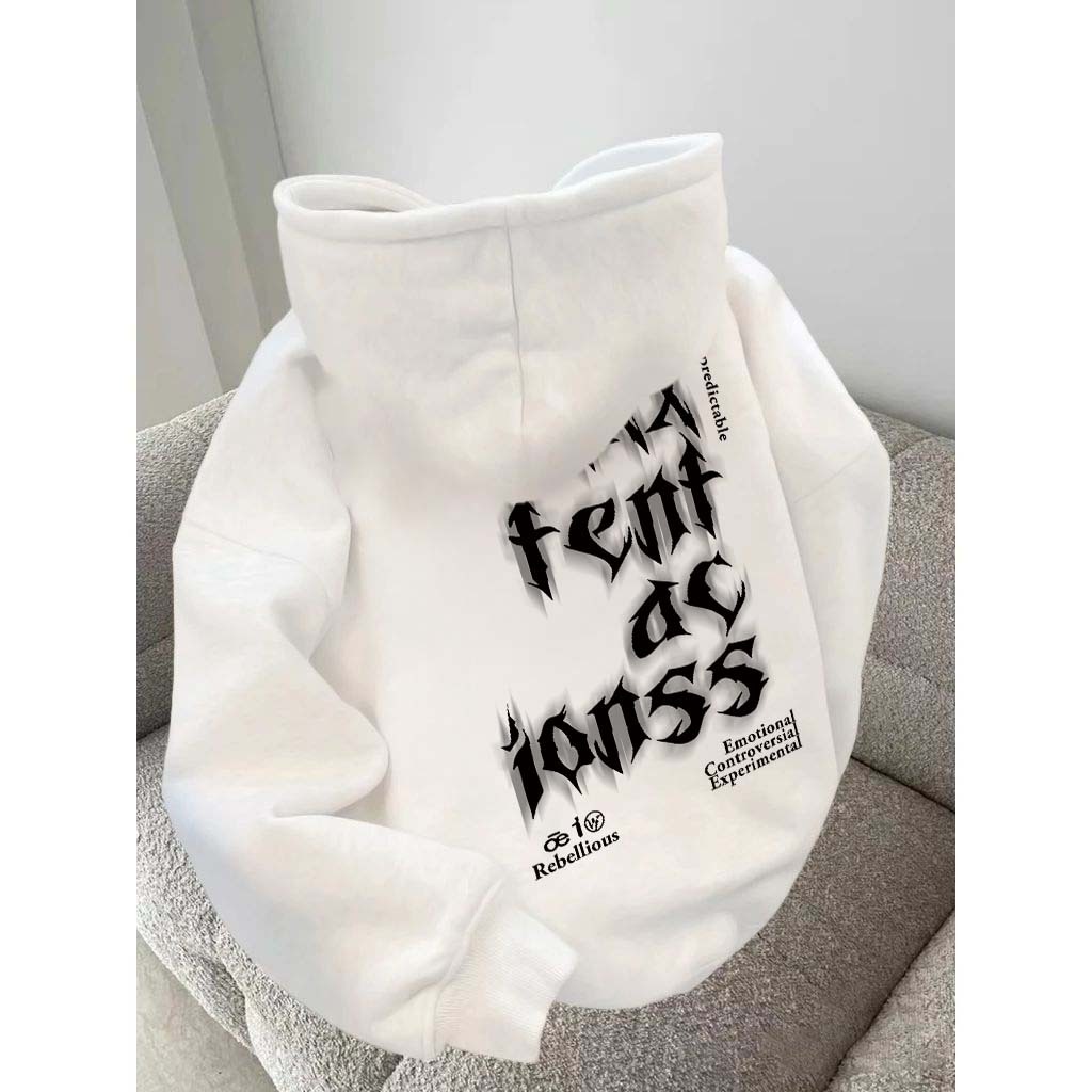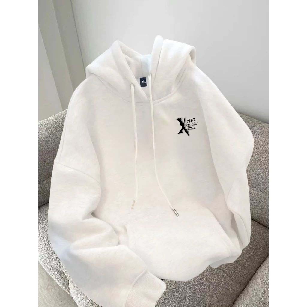 Hoodie Pria | Blurred Letters Cetak | Hoodie Putih Korean Style Sweater Cowok Pria Jumper Oversize Premium Pria Wanita S
