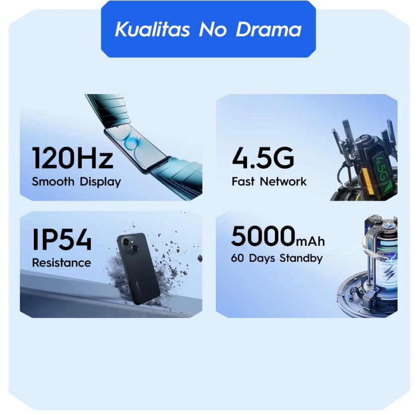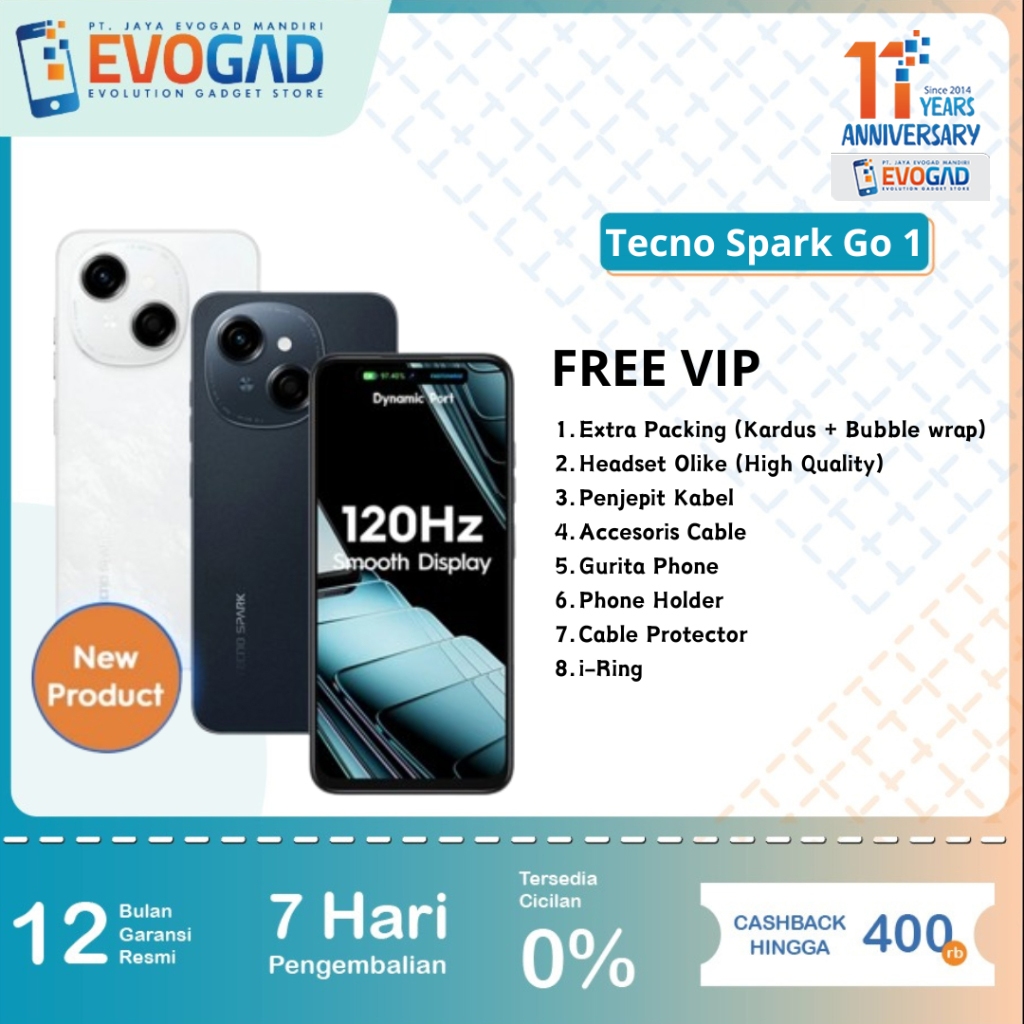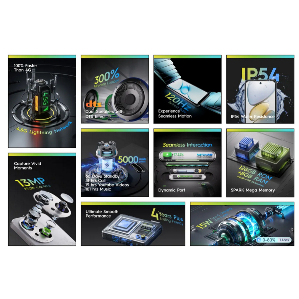 TECNO SPARK GO1 3/64GB, 4/64GB & 4/128GB, Android 14 (Go edition), 120Hz Display, 4.5G Fast Network, IP54 Resistance - G