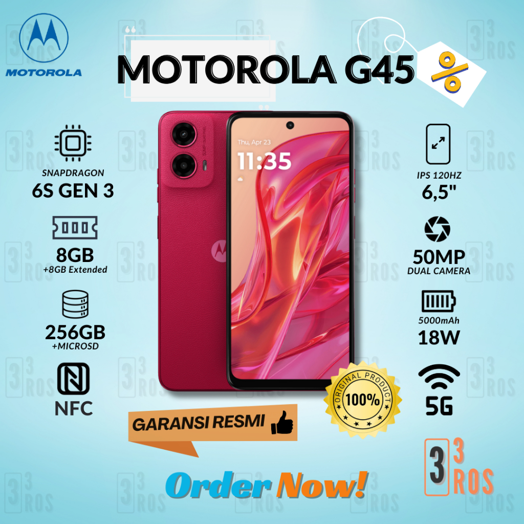 Motorola G45 5G 8/256GB - Up to 16GB Extended RAM - Snapdragon 6s Gen 3 - 6.5 inch Screen Size - Gorilla Glass 3 - 120Hz