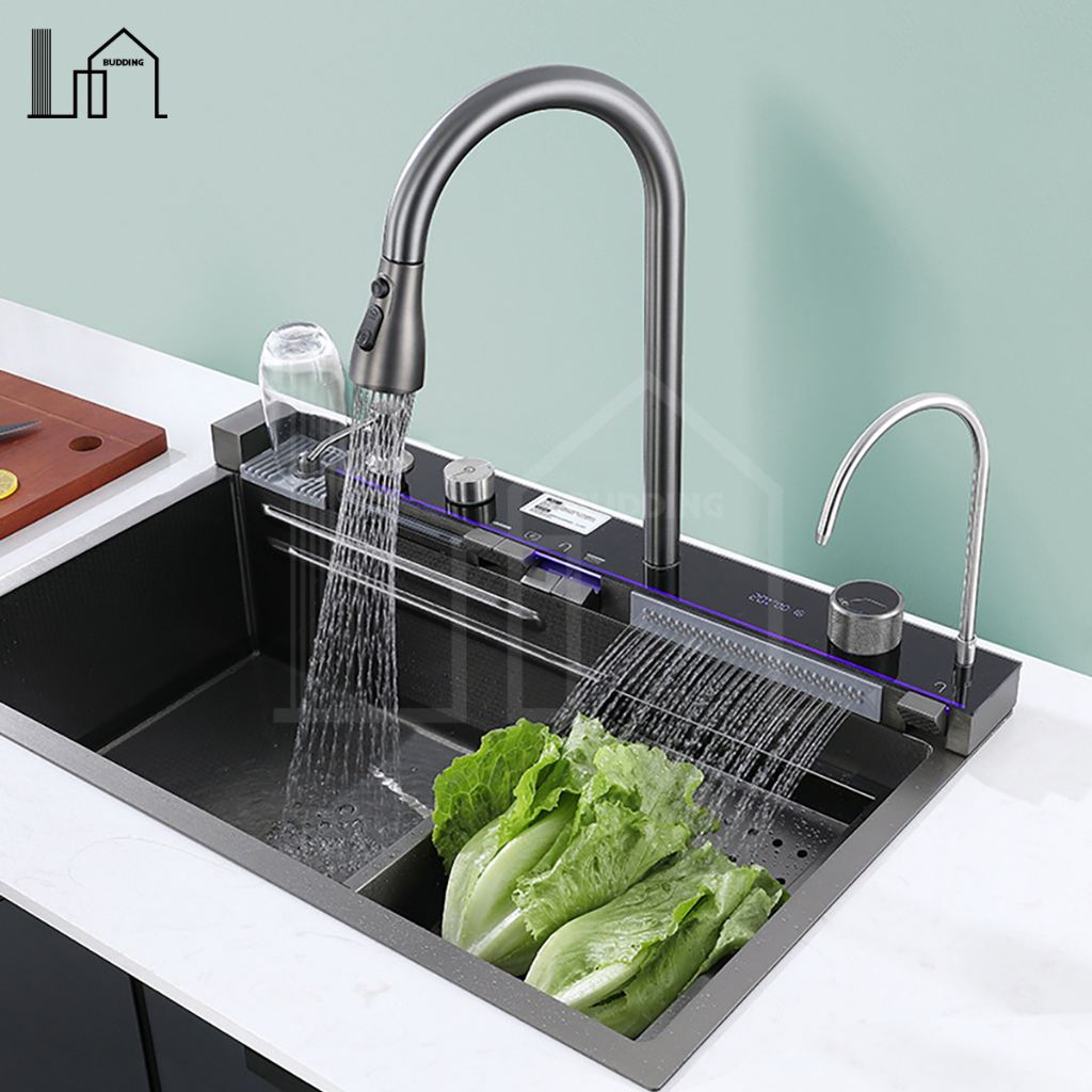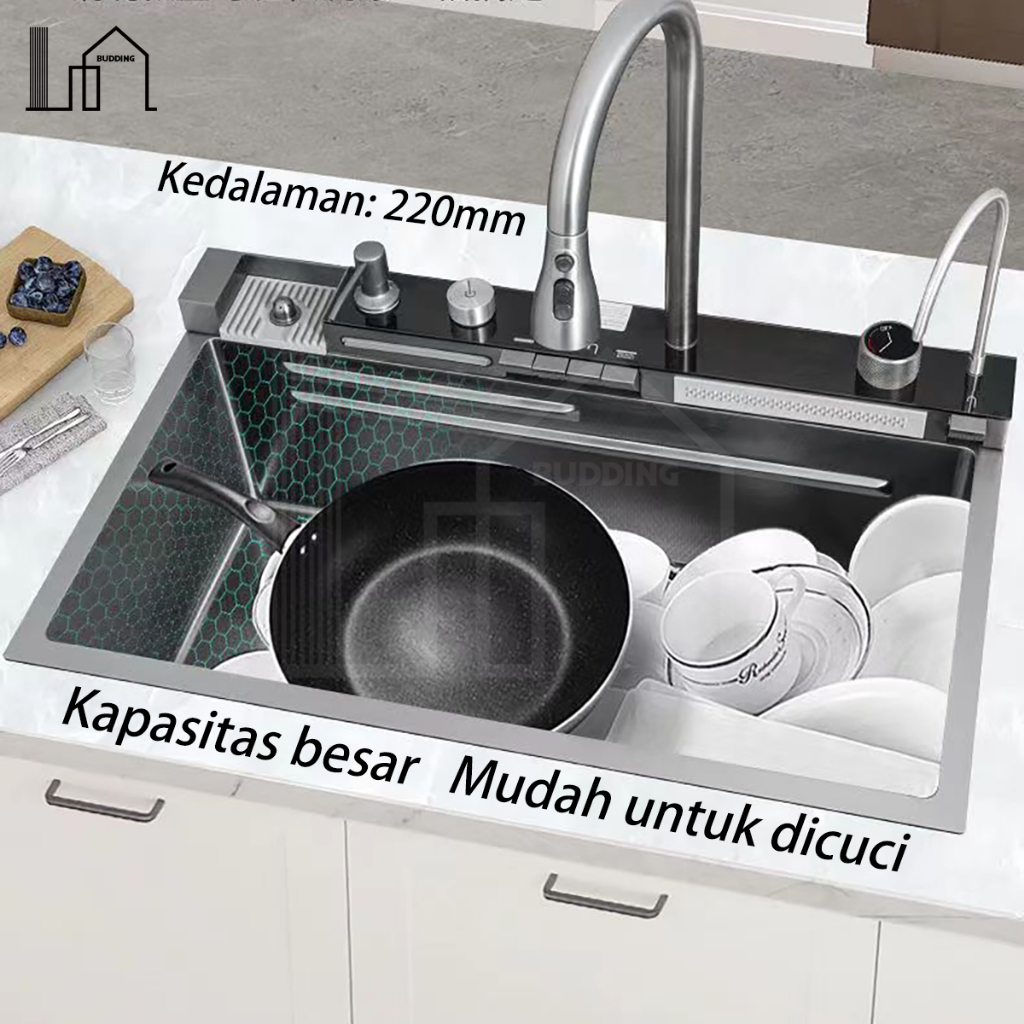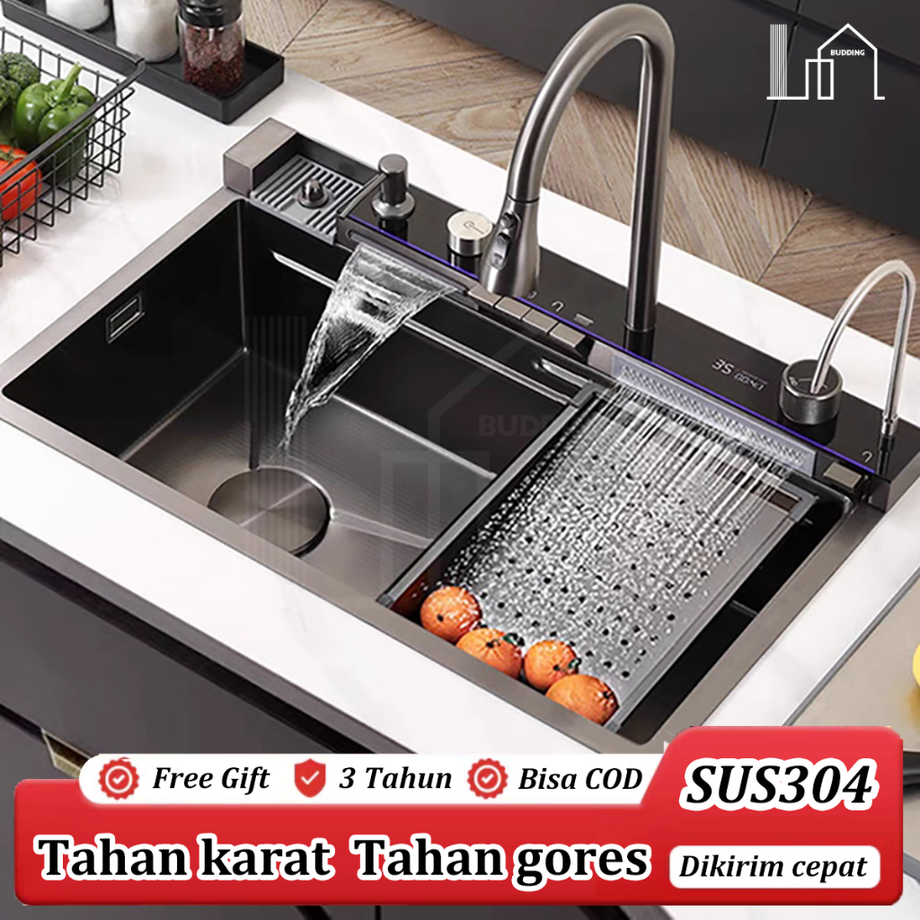 SUS 304 Kitchen Sink Wastafel Stainless Steel Bak Cuci Piring Wastafel Dapur Lengkap Tarik Adjustable