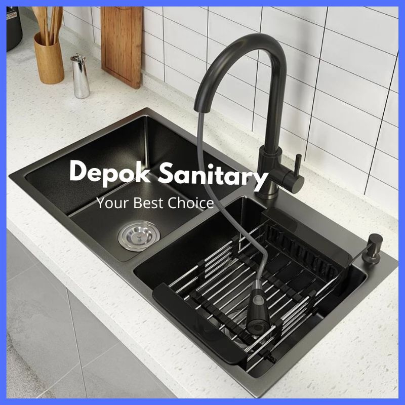 Stainless Steel kitchen sink Modern wastafel cuci piring bak cuci piring stainless sink cuci piring Hitam/Perak 1 lubang
