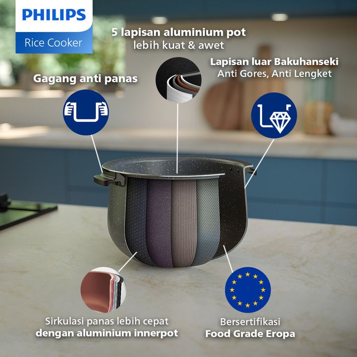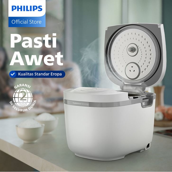 Rice Cooker Philips 1.8L 3000 Digial Series Putih Anti Lengket Freshdefense Technology Nasi No Basi Hingga 48 Jam