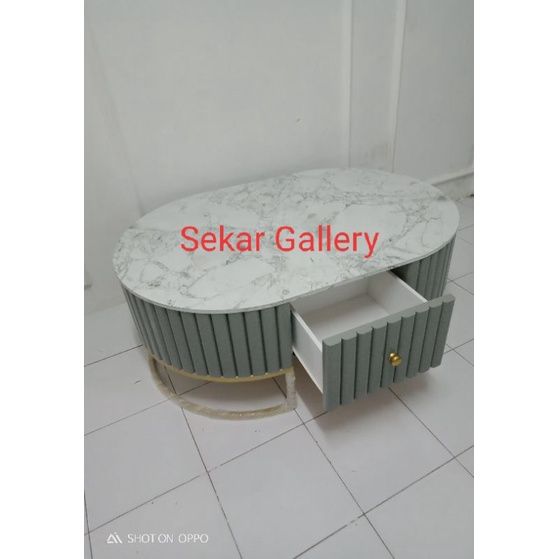 Meja Tamu Oval Marbel Motif Besi 100cm