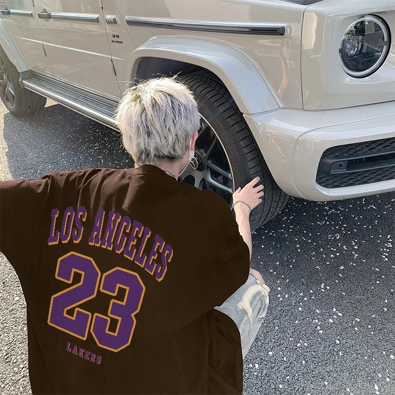 HIGH RAIN baju pria oversize Kaos Pria Lakers James Baju Distro Pria Retro Style T Shirt Longgar Kaos Import baju t shirt pria