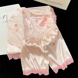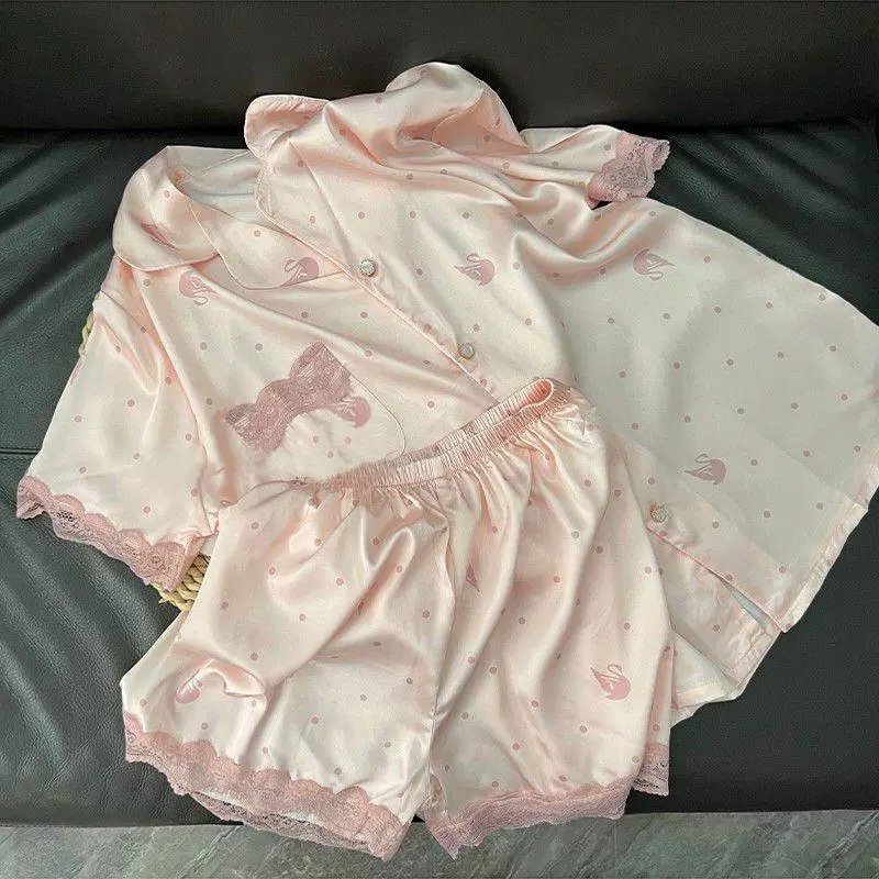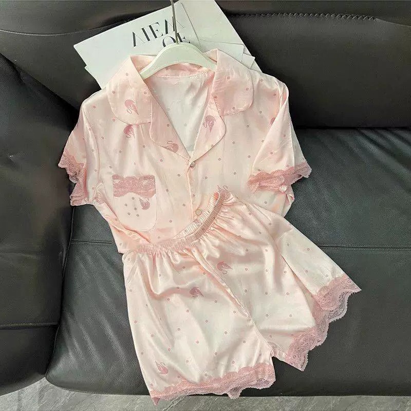Piyama Sutra Untuk Wanita / baju tidur / baju tidur sutra / baju tidur wanita korea style / Piyama Sutra Pola Angsa Bung