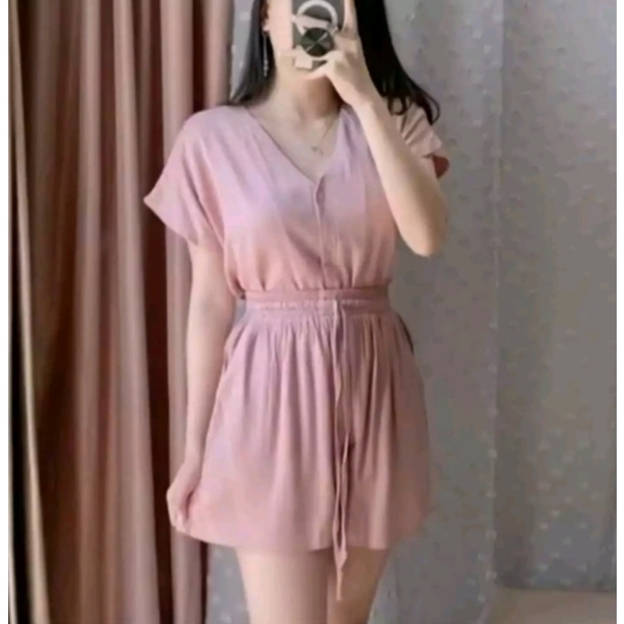 Piyama Baju Tidur Setelan Wanita Dewasa Bahan Rayon Motif Polos