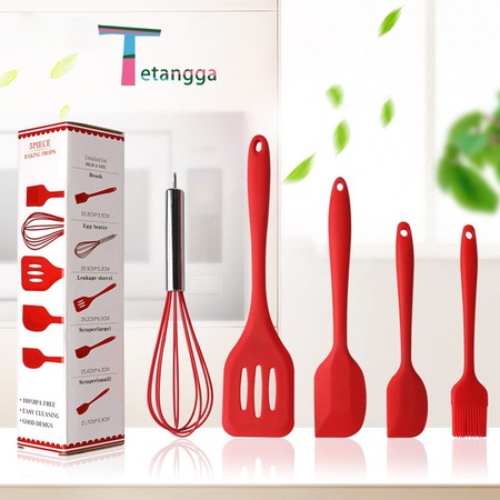 Set Spatula Peralatan Masak Sutil Silikon Non Stick Cooking Tools Isi 5 Pcs Kitchenware Spatula Set