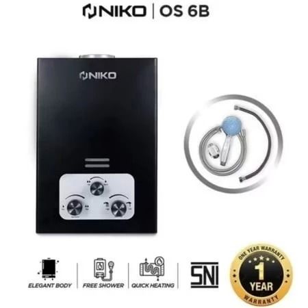 Niko , NK-6LN Putih / NK-6LDN Hitam . Water Heater , Water Hiter , Water Heter , Pemanas Air , Niko Gas / Water hiter