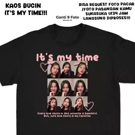 Kaos Distro Pria Wanita kaos Custom Bucin it's My Time Bisa Request Foto Pacar Kamu Lengan Pendek Katun Premium Murah