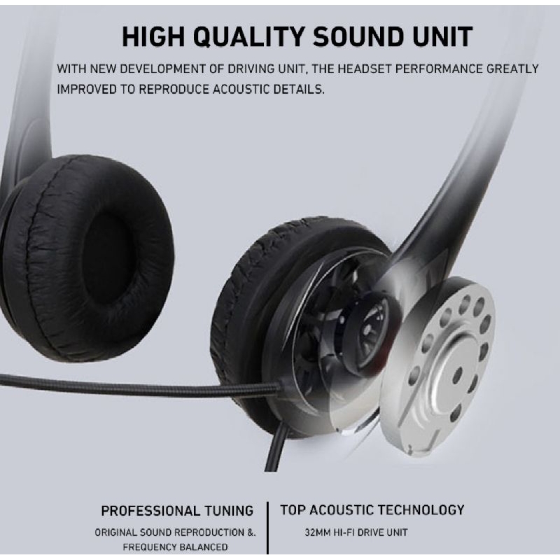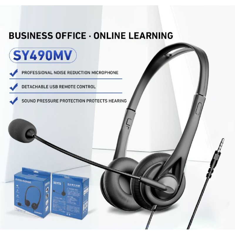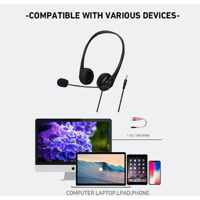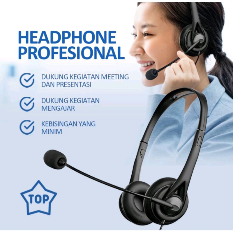 Headphone stereo dengan mikrofon dan single jack 3.5mm Cocok untuk pembelajaran di kantor