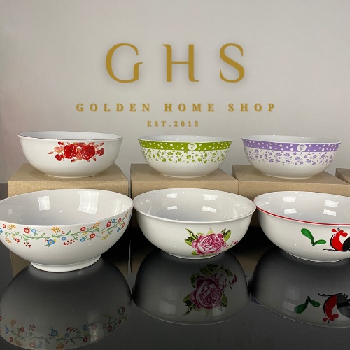 Mangkok Jumbo 9" Porcelain Mahkota | Deep Bowl Soup | Wadah Makanan Mangkuk Kopin Crown Sald Bowl Ceramic Keramik