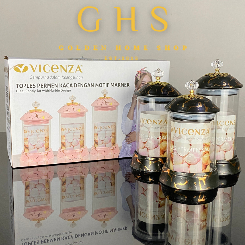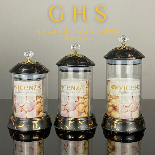 Toples Permen Marble Kaca Hitam | Glass Black Candy Jar Vicenza GA301