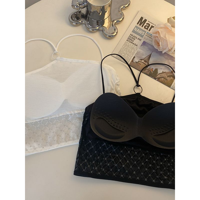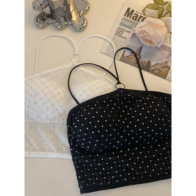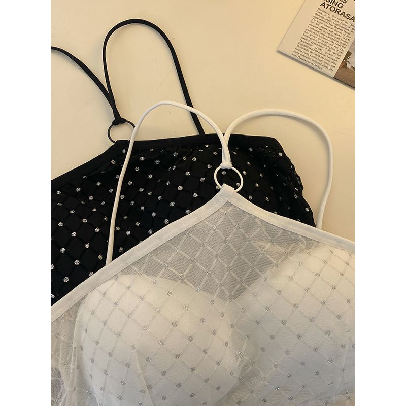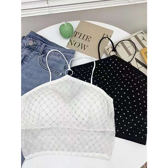 Crop Top Cross Tanktop Knit Wanita Sexy Nilon Spandex