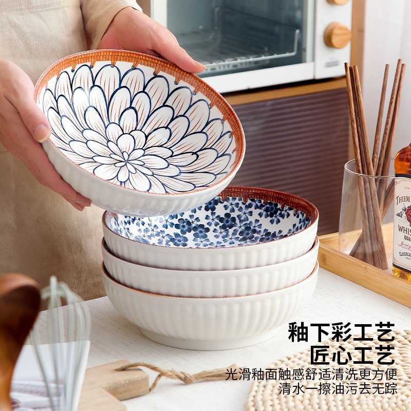 ASHOME Piring Makan salad besar Keramik retro floral Series Elegan Tahan Panas Microwave Set / Piring Saji Keramik Elegan