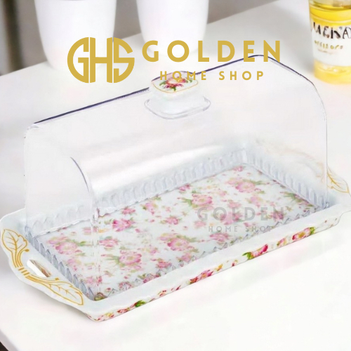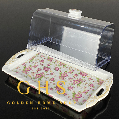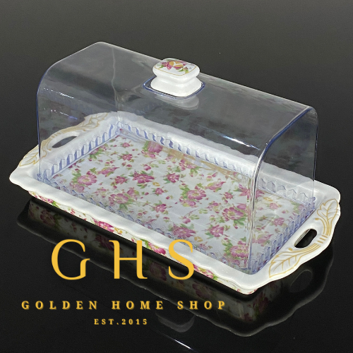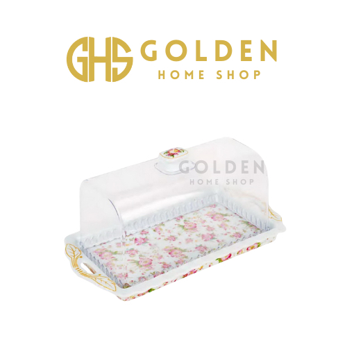 GHS - Tempat Roti Dengan Tutup Plastik Motif Melati Cake Plate With Lid PA176 Vicenza