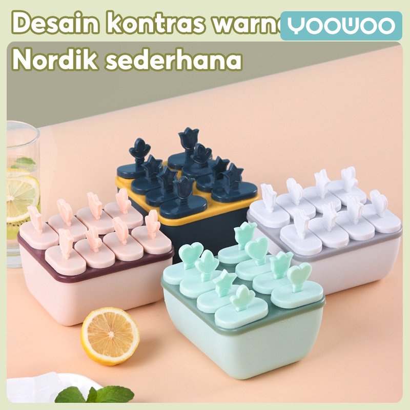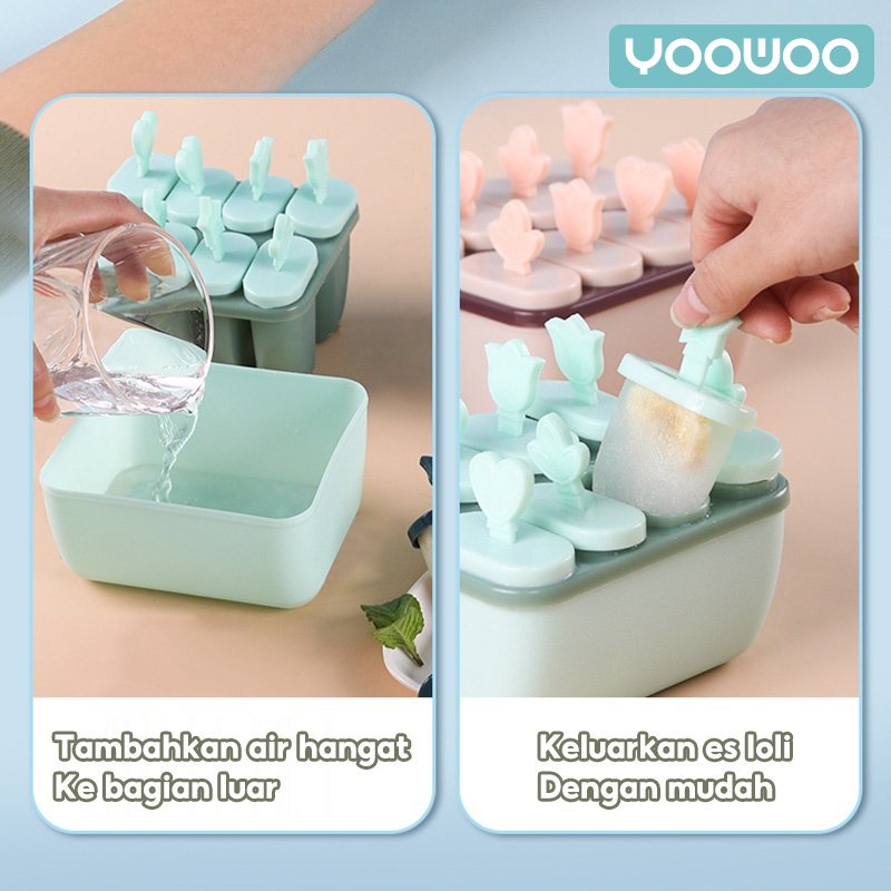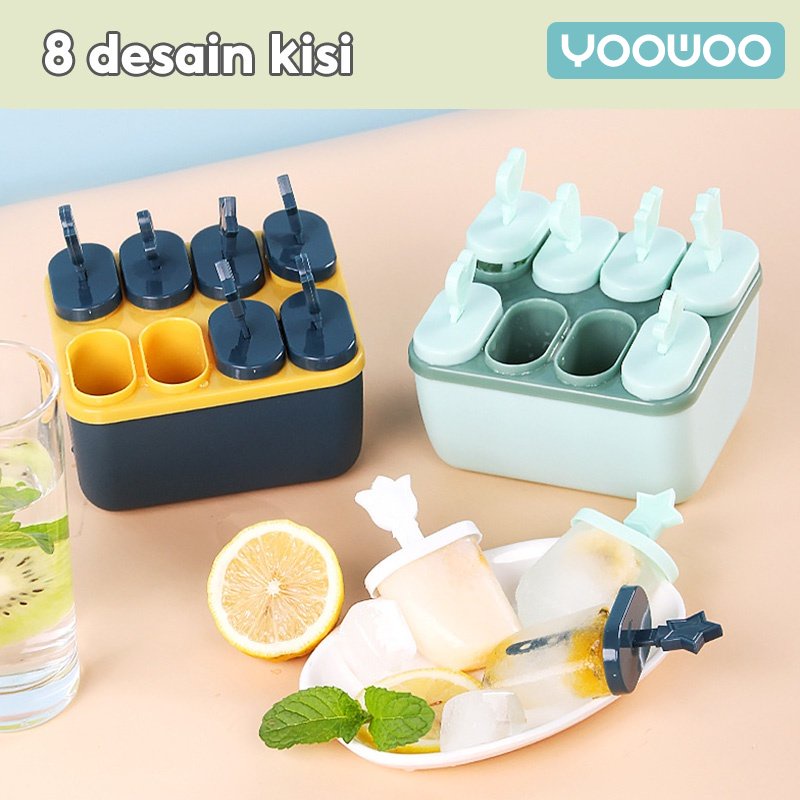 YooWoo Cetakan ice cream / Cetakan es krim 8 slot / es loli DIY / stik es krim / cetakan es batu