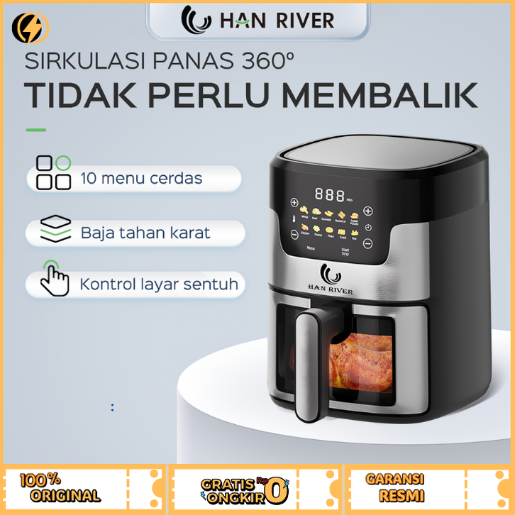 GERATIS > Ongkir HAN RIVER Air Fryer 650W Touch Screen Digital kapasitas besar 8L Penggoreng Makanan Serbaguna