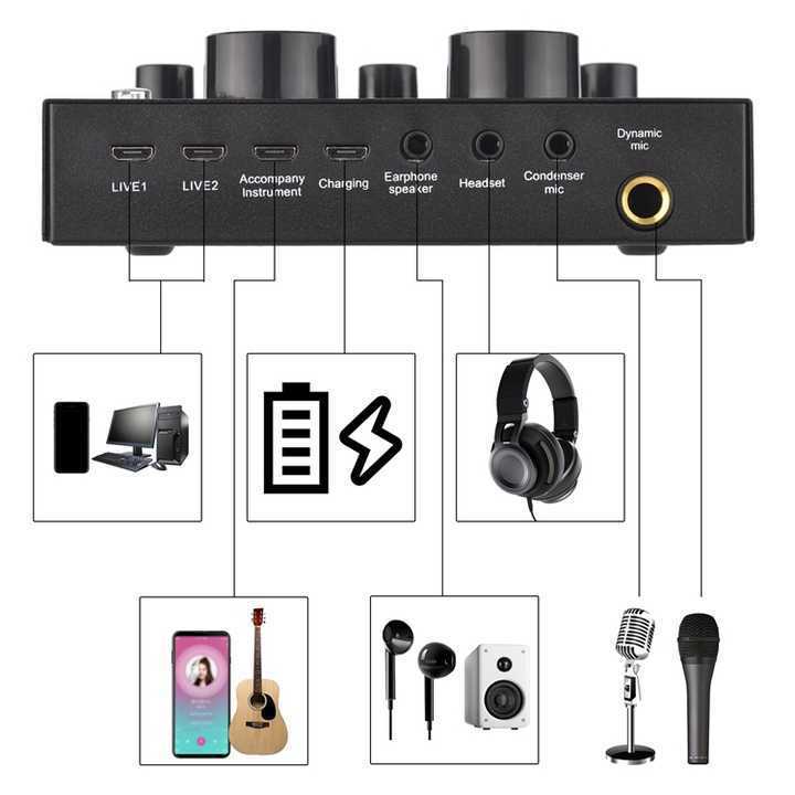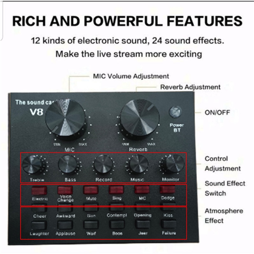 SOUND CARD PROFESSIONAL LIVE V8 V8S SET AUDIO LIVE BLUETOOTH/EXTERNAL - BLACK/HITAM