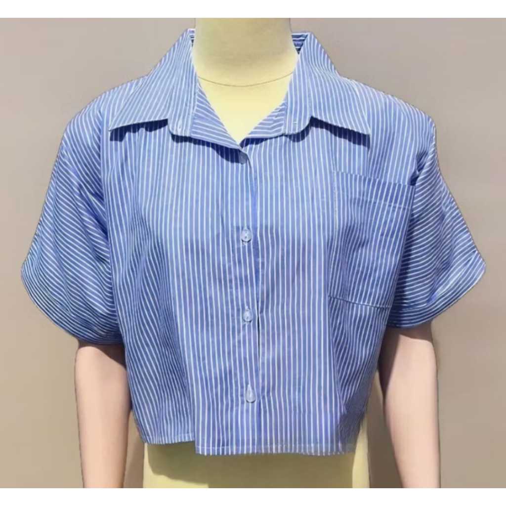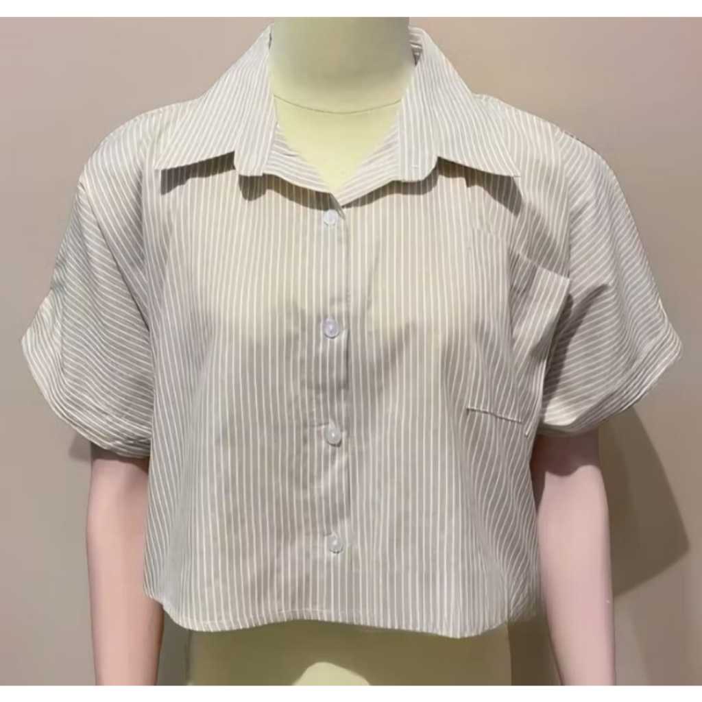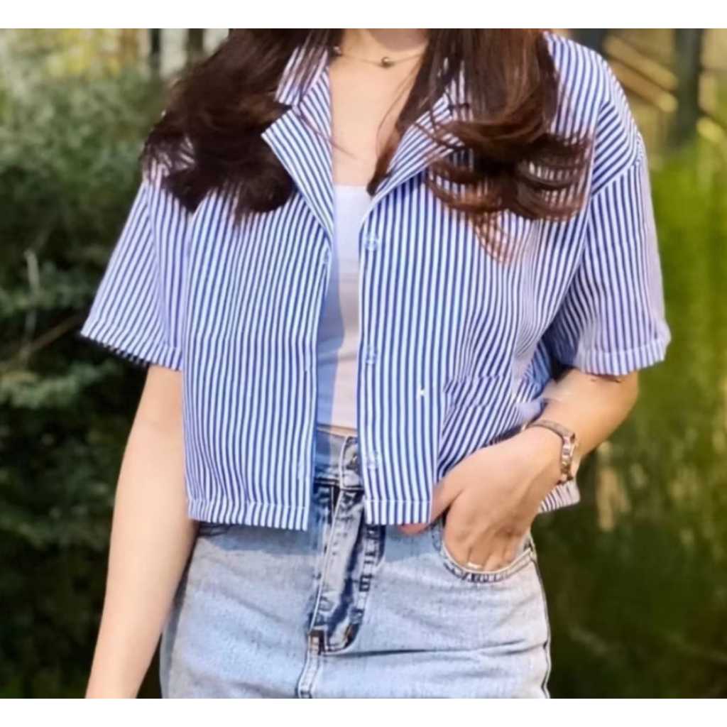Crop Top Kemeja Yolla Atasan Wanita Tangan Pendek