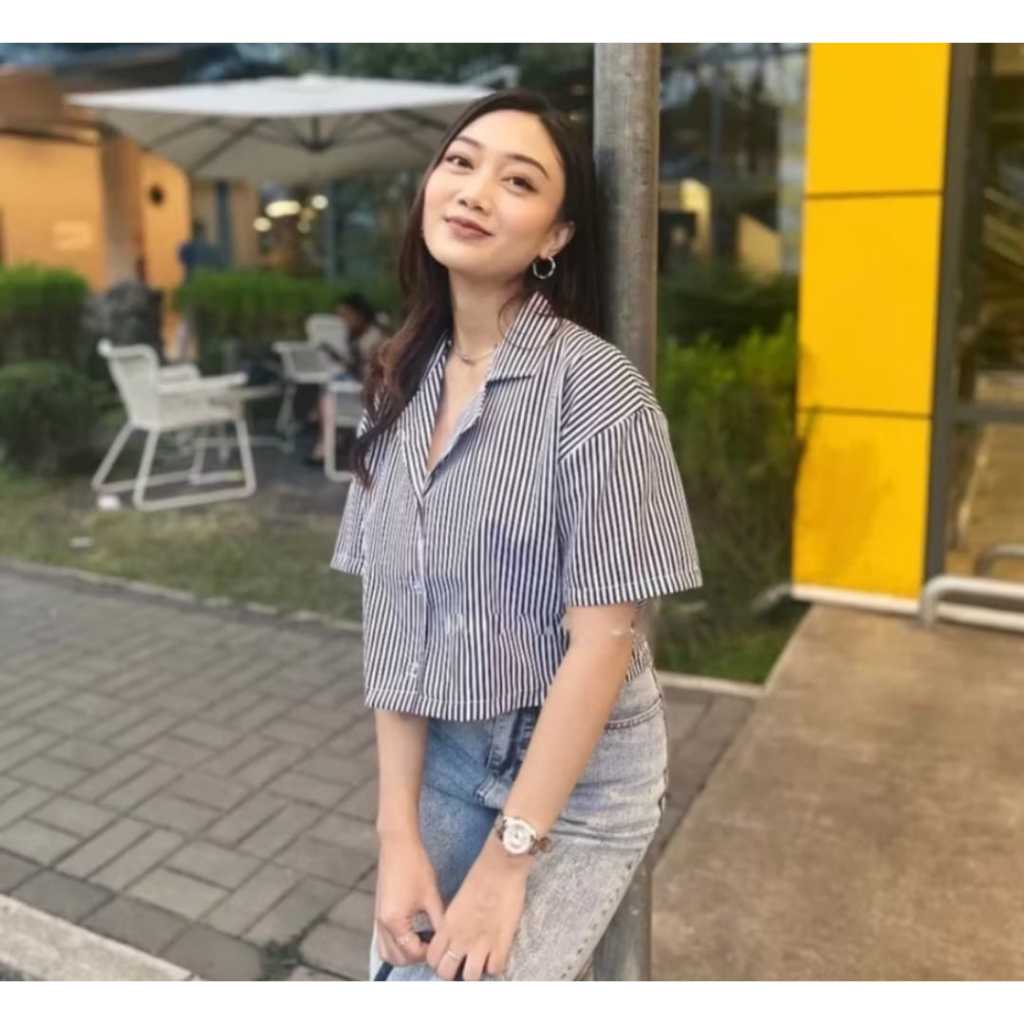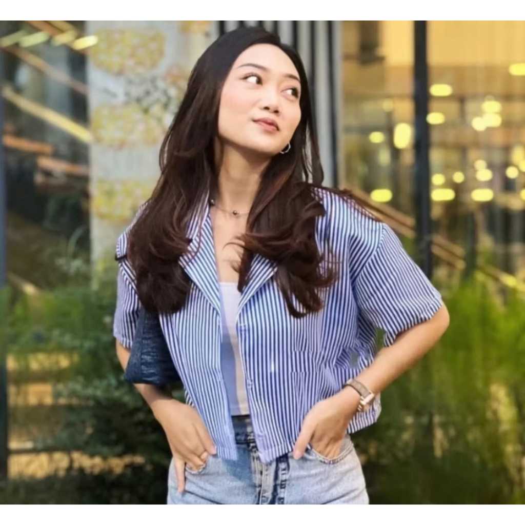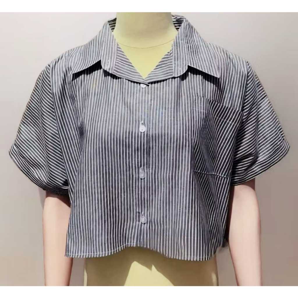 Crop Top Kemeja Yolla Atasan Wanita Tangan Pendek