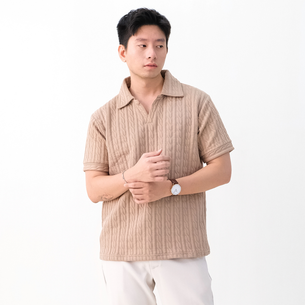 Sanvanina Cable Knit Polo Shirt | Kemeja Polo Pria Lengan Pendek Rajut | Atasan Berkerah Old Money