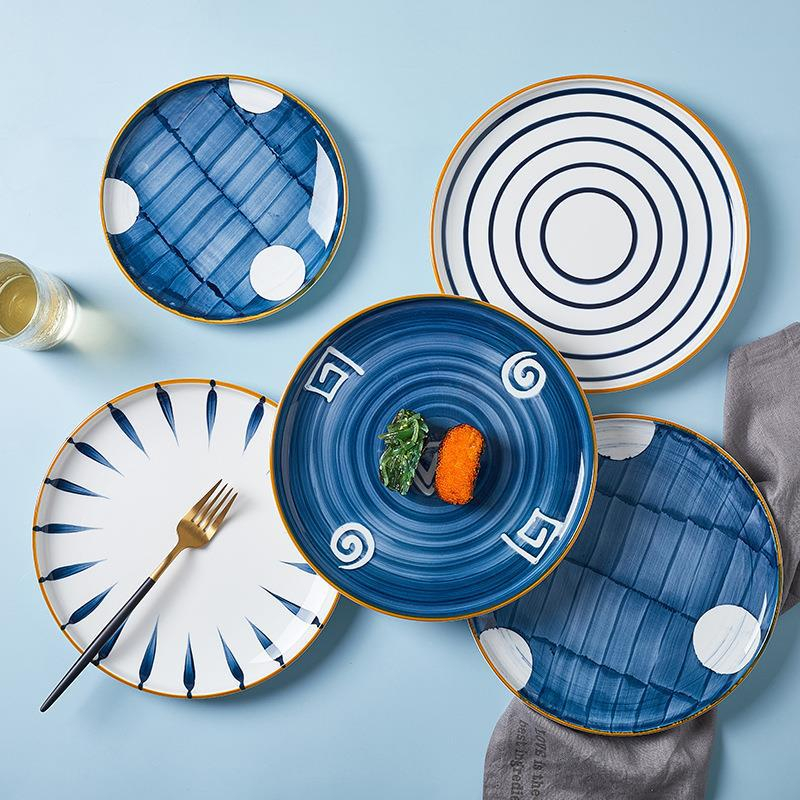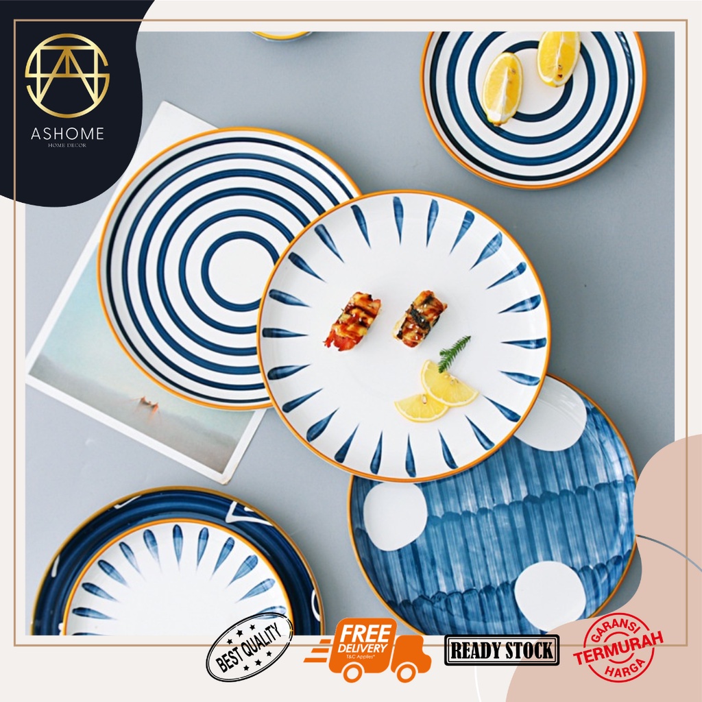 ASHOME Piring Makan Keramik dan Piring Saji Keramik Motif Jepang yang Tahan Panas dan Microwave Safe / Piring Makan Jepang